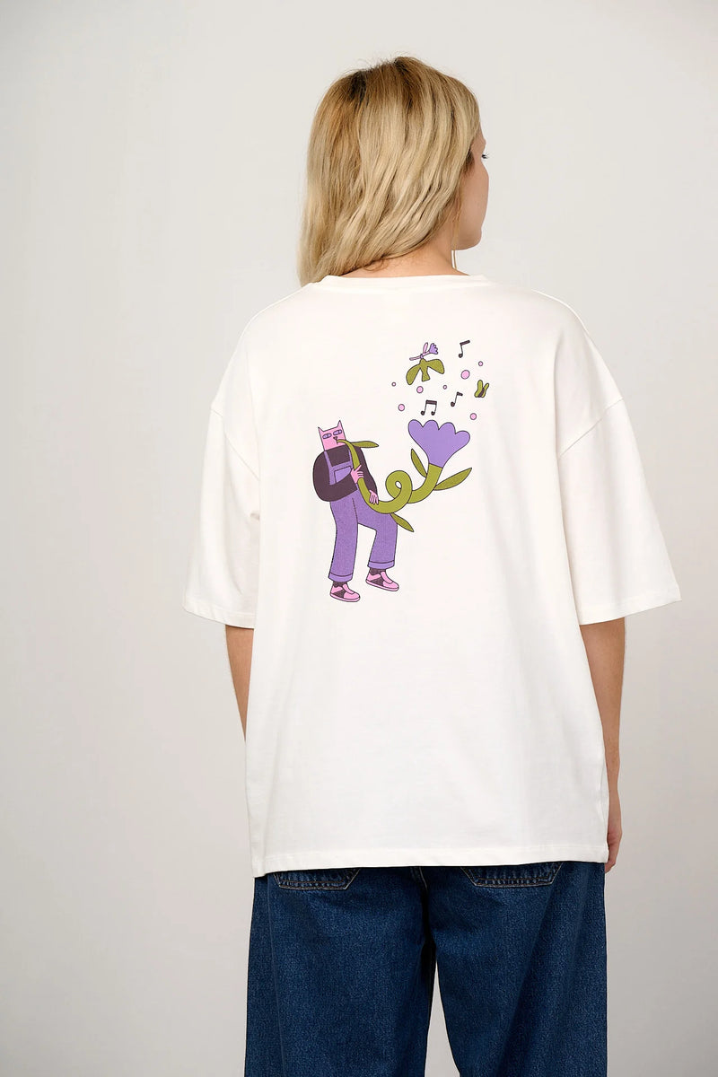 🌱 100% ORGANIC COTTON 🌱Benny - Oversized Heavyweight Cotton T-Shirt in Musical Cat