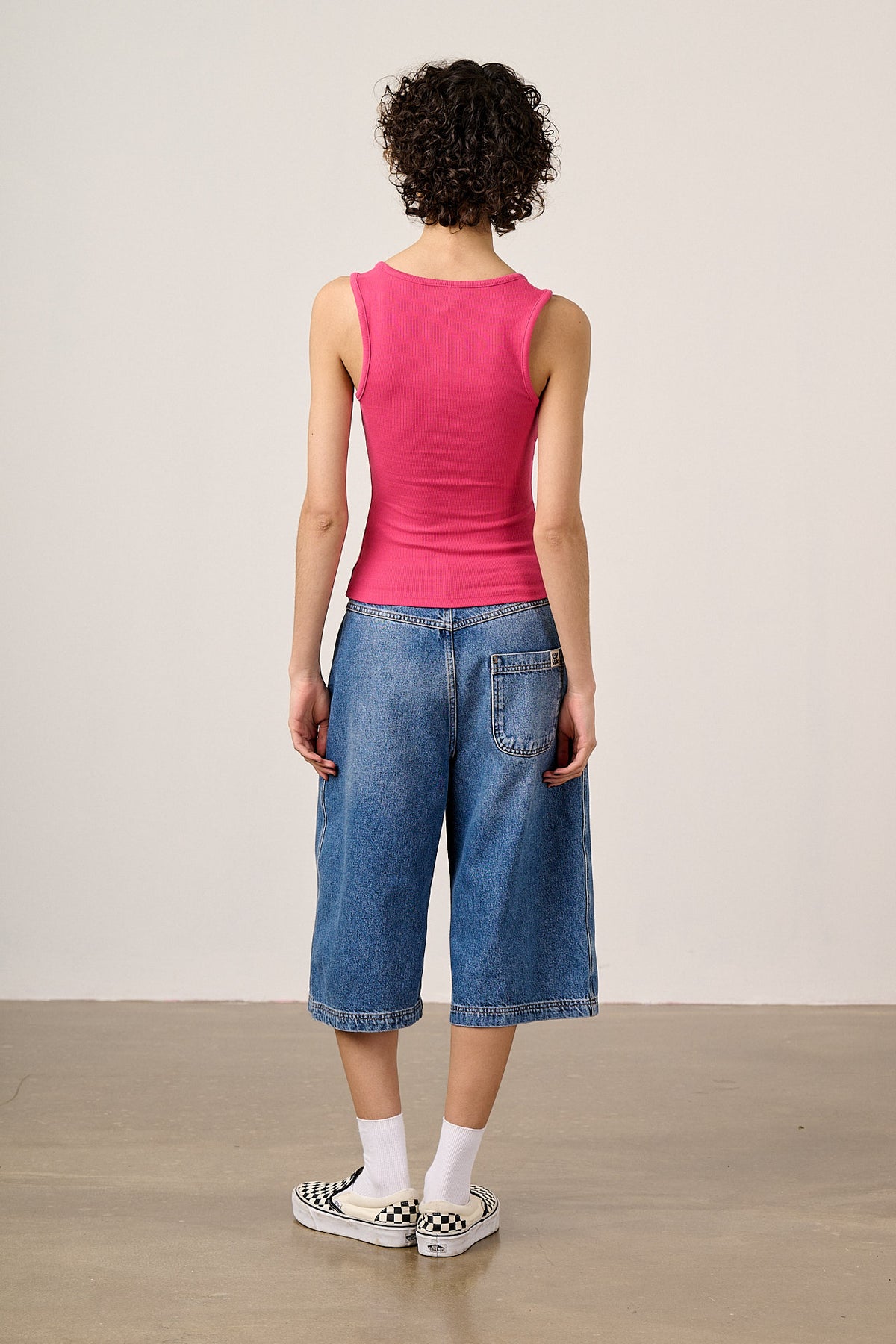 Romy - Cotton Scoop Vest in Fuchsia Pink
