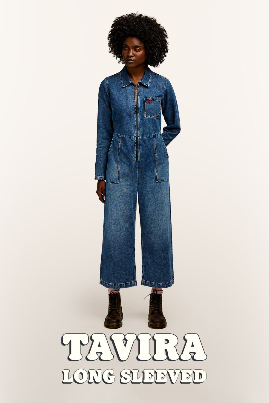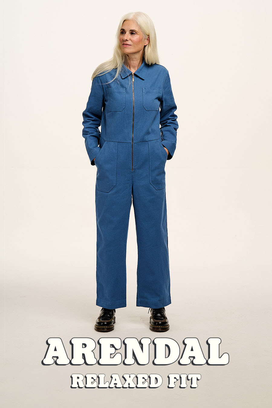 Arendal - Cotton Long Sleeve Jumpsuit in Blue