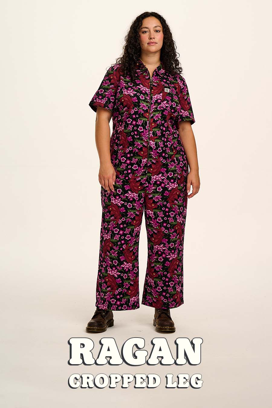 Arendal - Cotton Long Sleeve Jumpsuit in Blue Floral Check Print