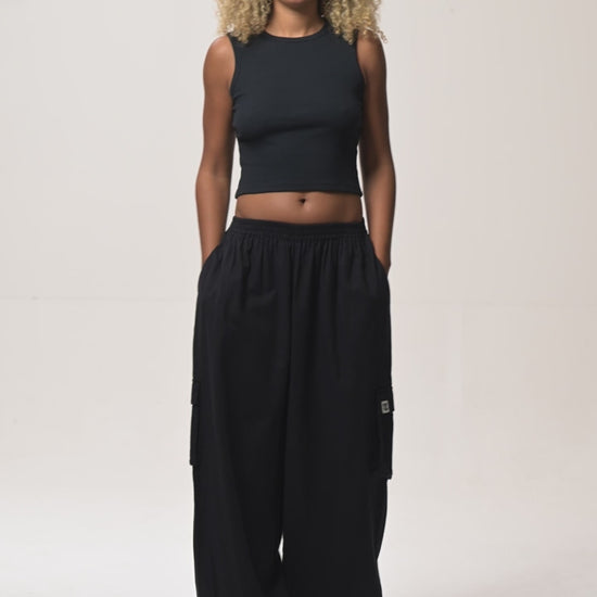 Rumi - Wide Leg Cotton & Linen Trousers in Black