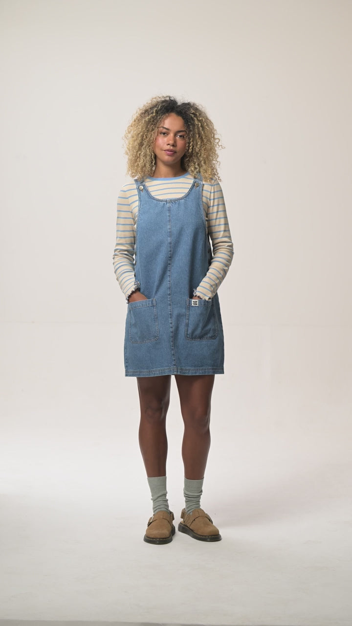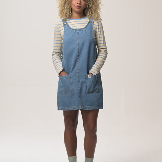Layla - Mini Denim Dress in Mid Wash Blue