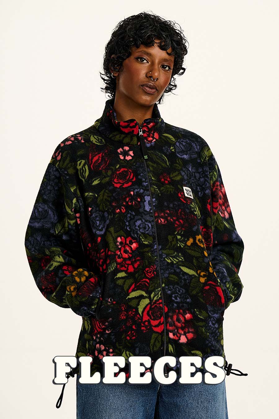 Marlow - Lightweight Button Down Borg Fleece in Vintage Floral Print
