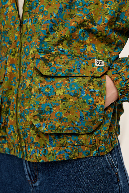Jai - Lightweight Cotton Jacket in Green Trix Floral Print