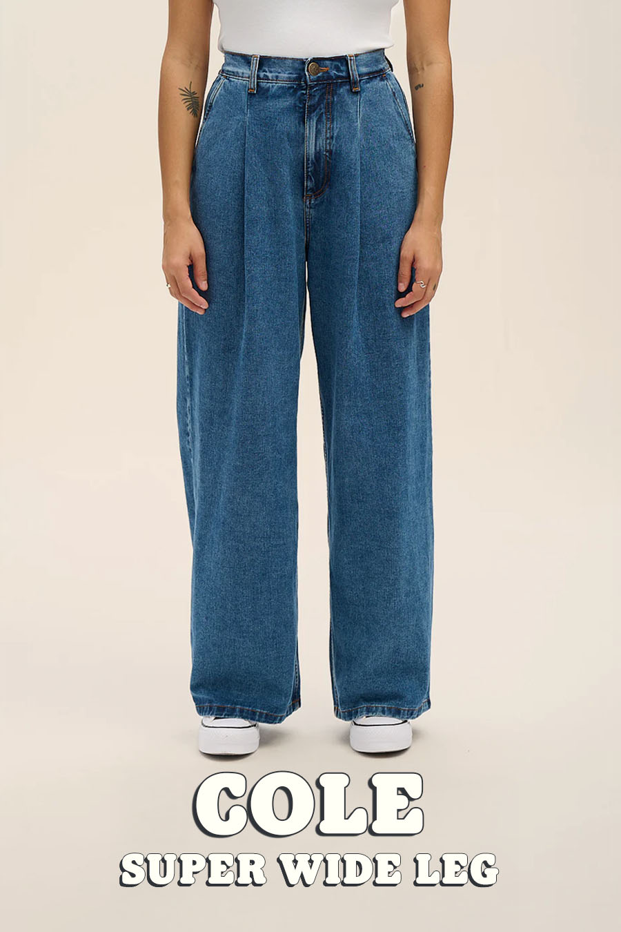 Cole - Wide Leg Denim Jeans in Mid Wash Blue
