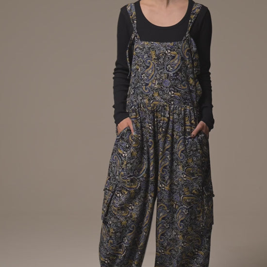 Miyada - Brushed Cotton Dungarees in Grunge Blue Paisley Print