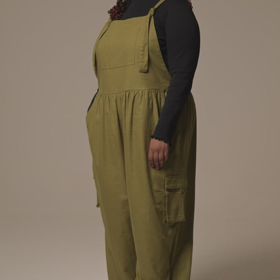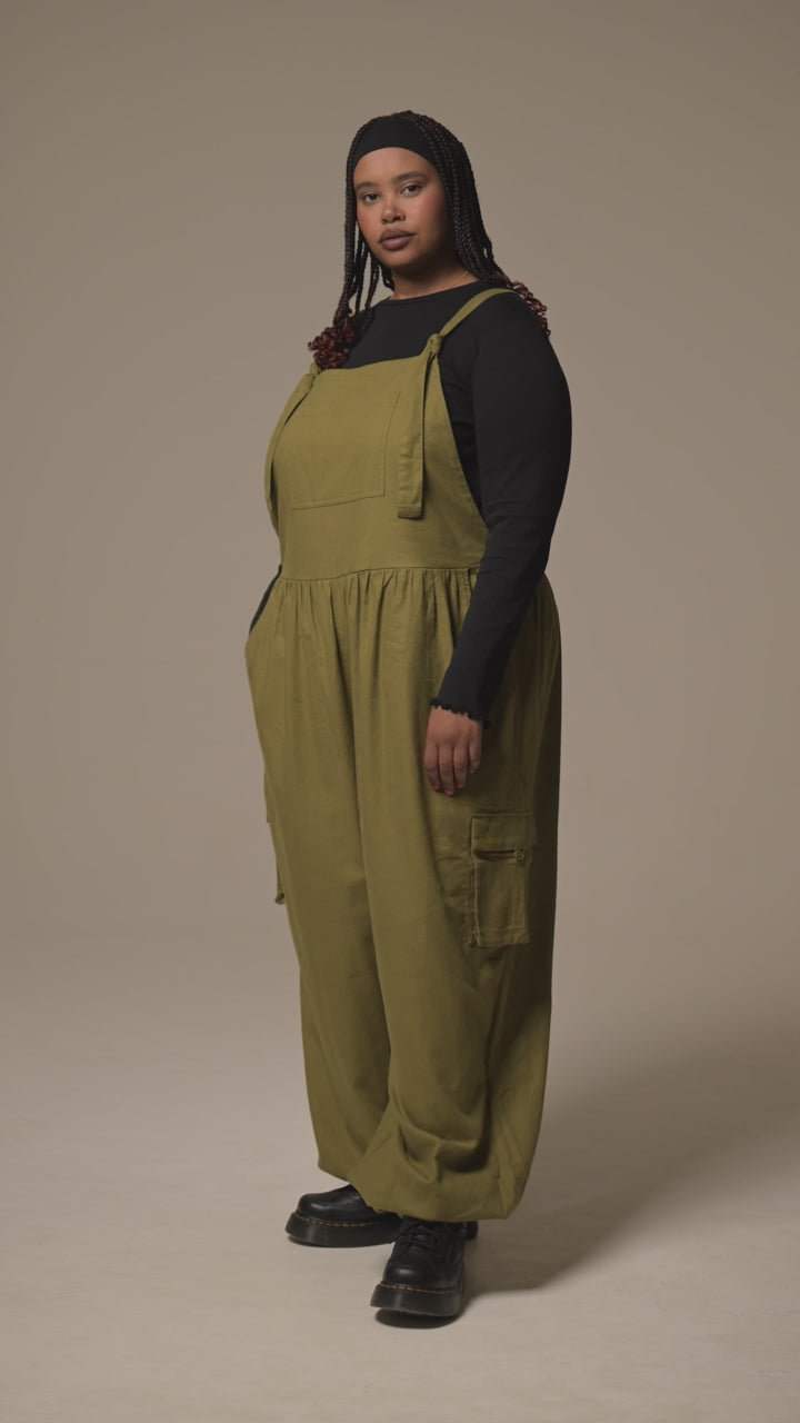 Miyada - Brushed Cotton Dungarees in Khaki Green