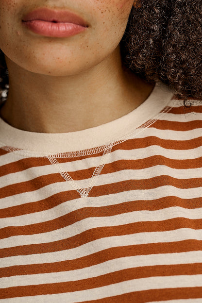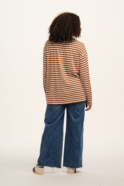 Murat - Long Sleeve Lightweight Cotton & Hemp T-Shirt in Amber & Ecru Stripe