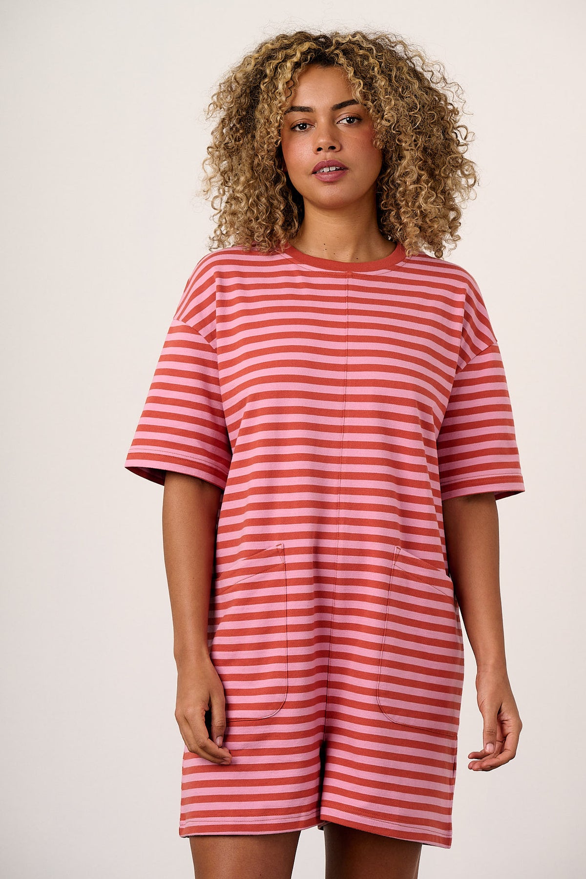 Pedro - Cotton Jersey Playsuit in Pink Stripe