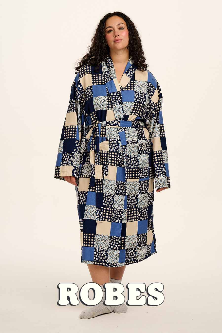 Braydon - Brushed Cotton Robe in Inked Blue Patchwork