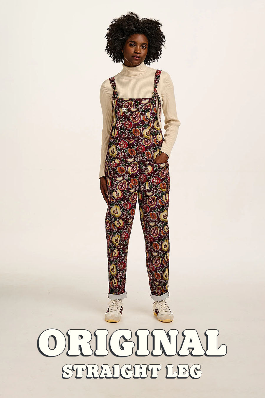 Original - Corduroy Dungarees in Black & Red Floral Print