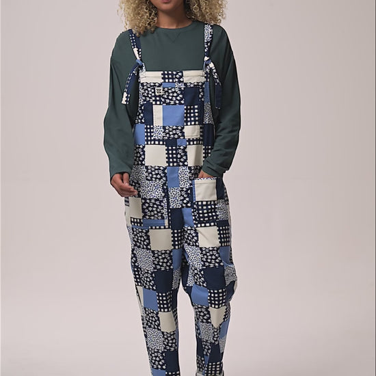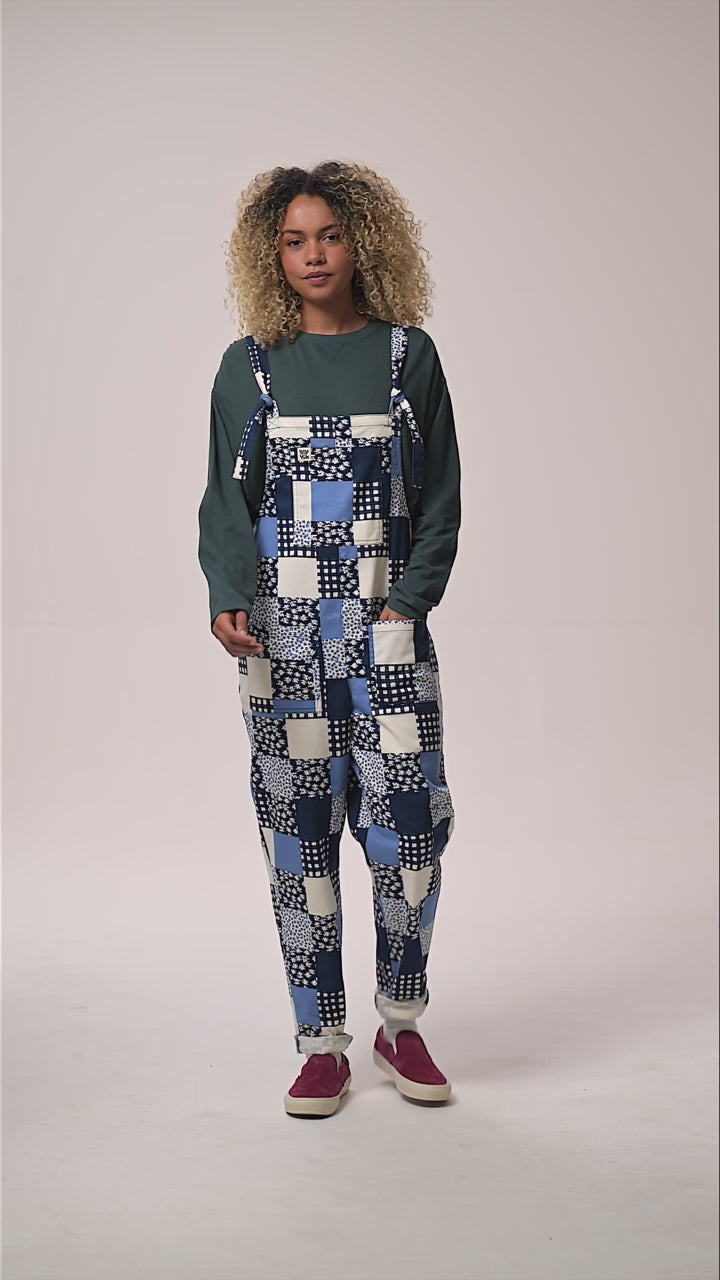 Original - Cotton Dungarees in Inked Blue Patchwork