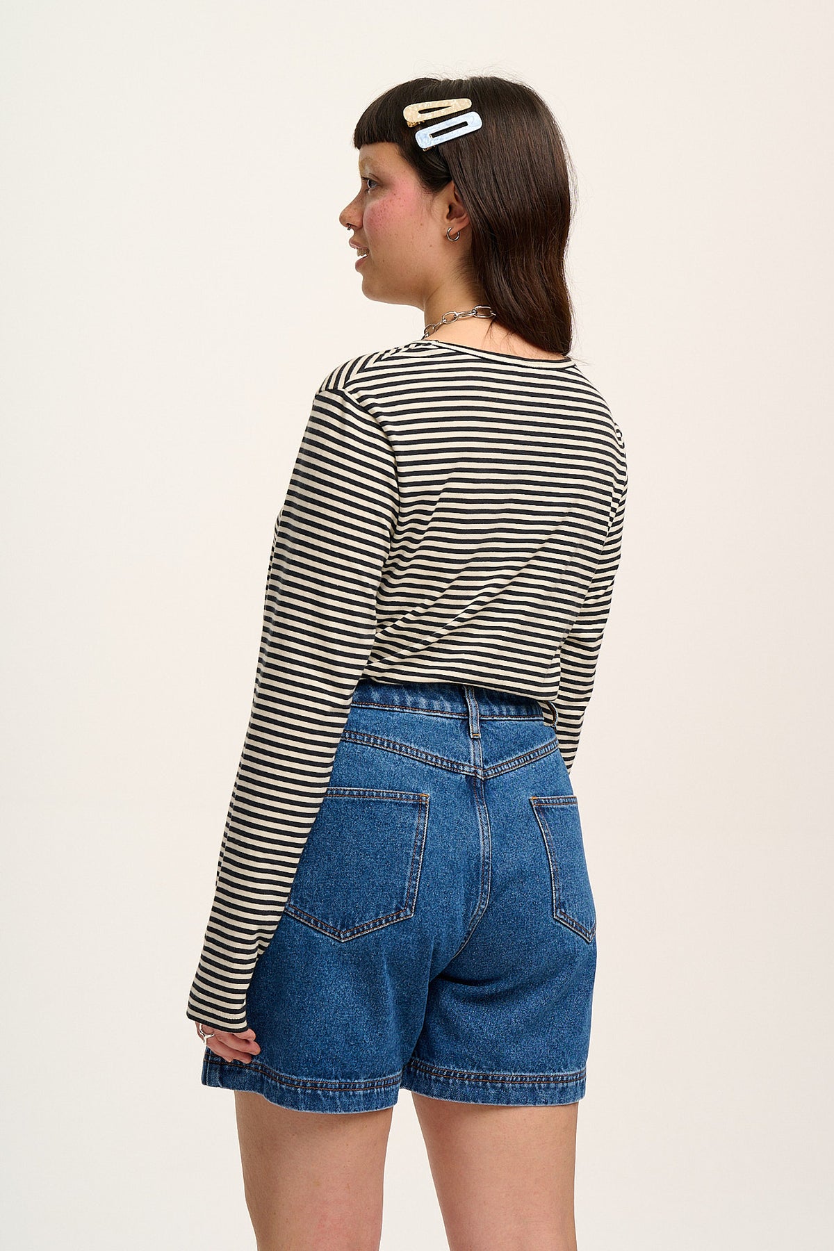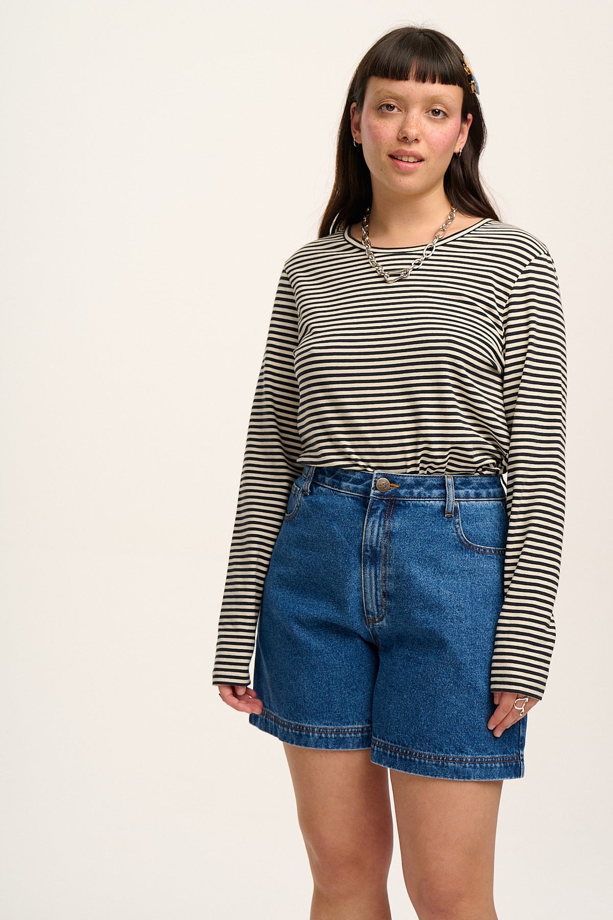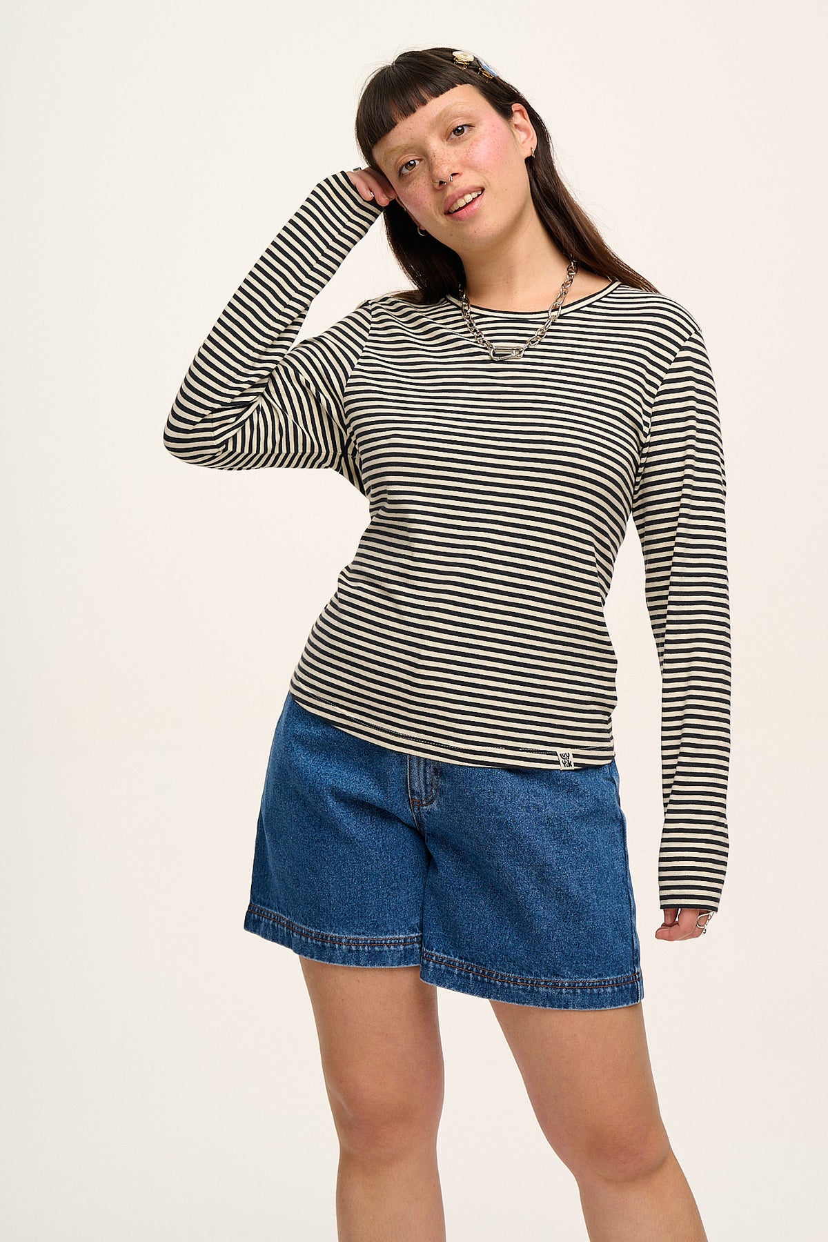 Rey - Long Sleeve Cotton T-Shirt in Black & White Stripe