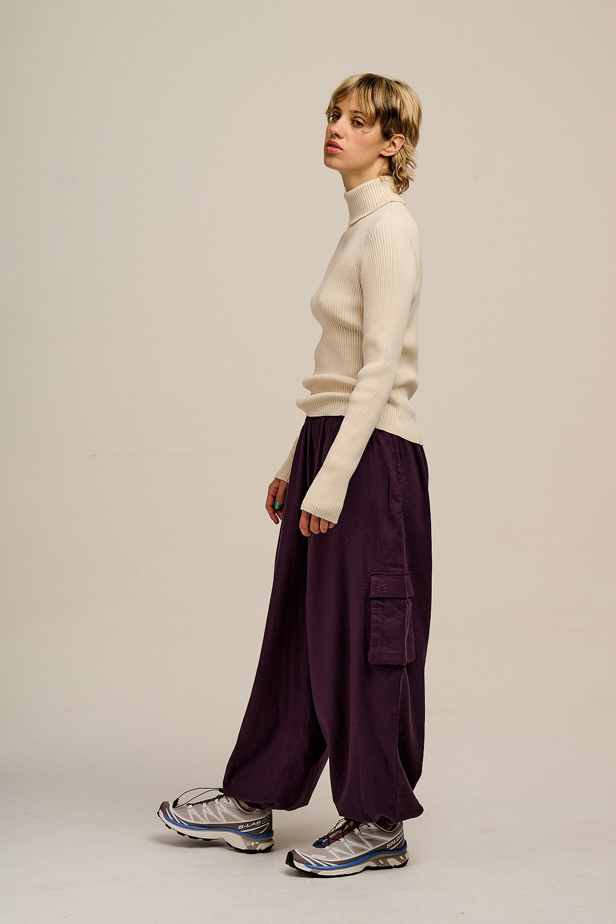 Rumi - Brushed Cotton Balloon Trousers in Plum Perfect