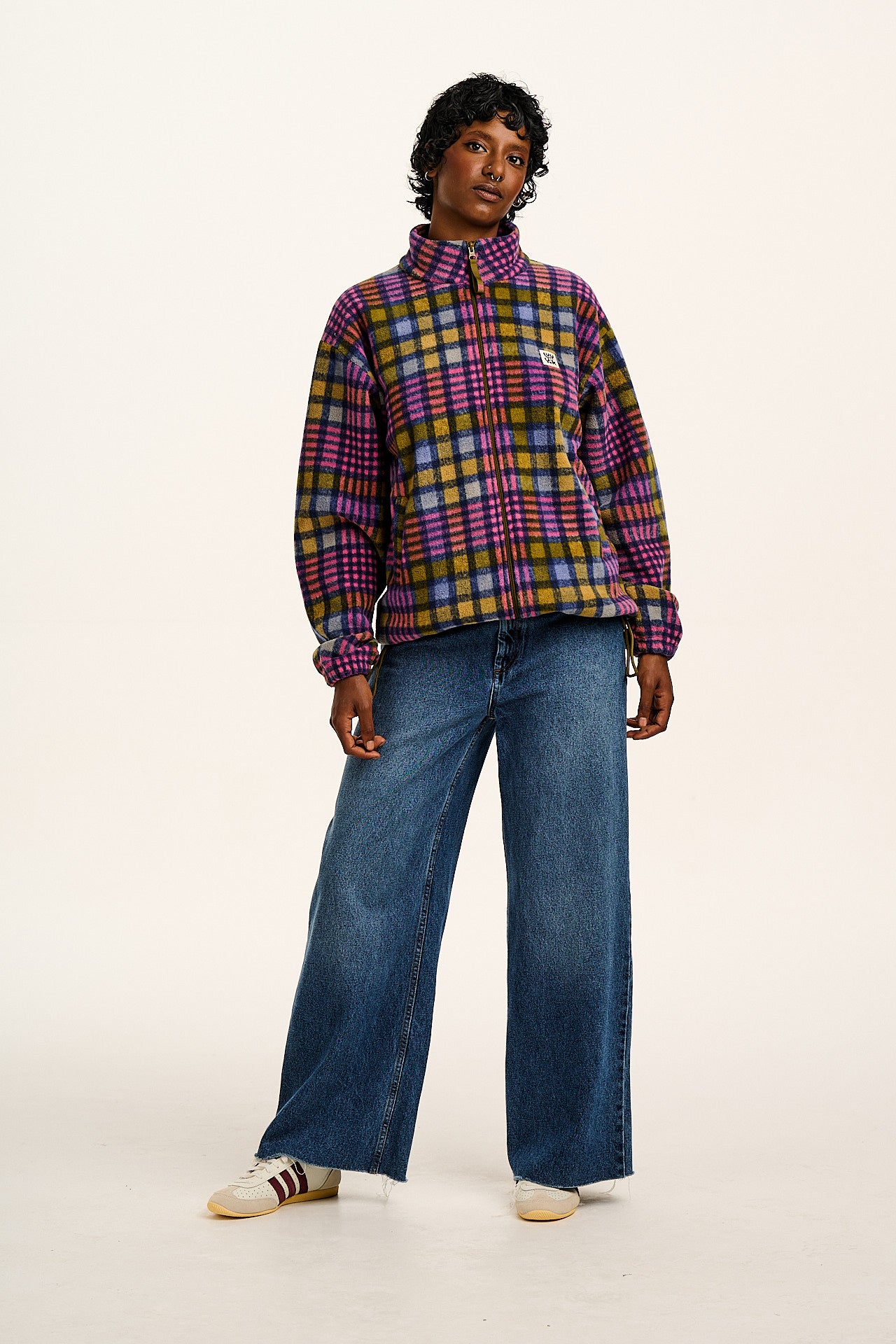 Nicks - Full Zip Polar Fleece in Purple Grunge Check