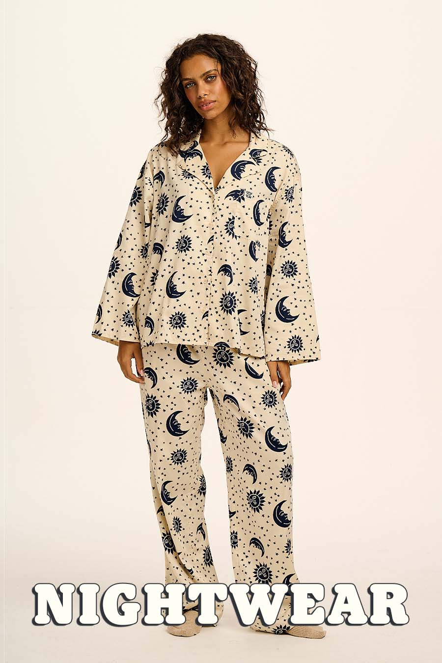 Dreamer - Cotton Sateen Pyjamas Set in Ecru Celestial Print