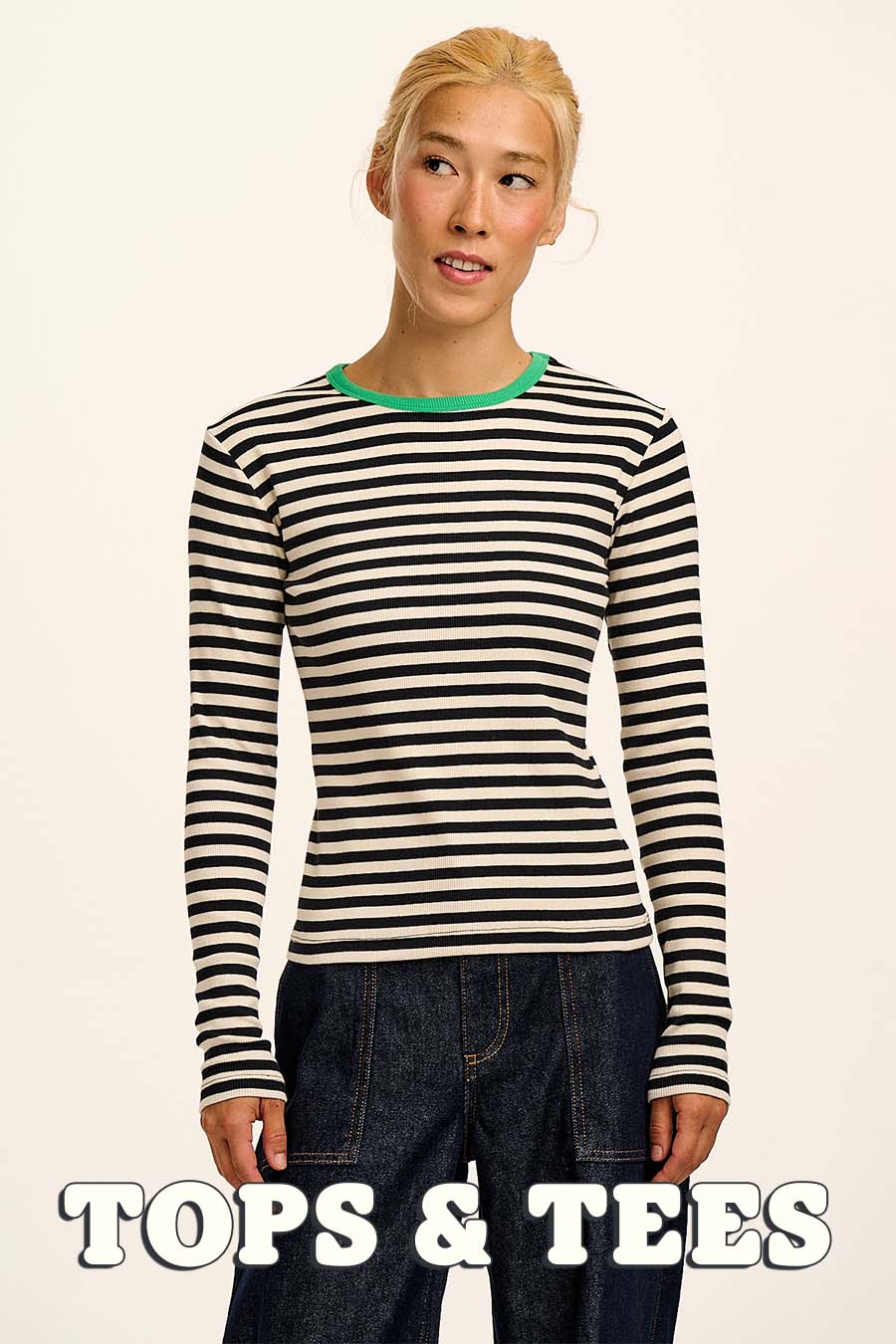 Grayson - Long Sleeve Cotton T-Shirt in Black & White Stripe