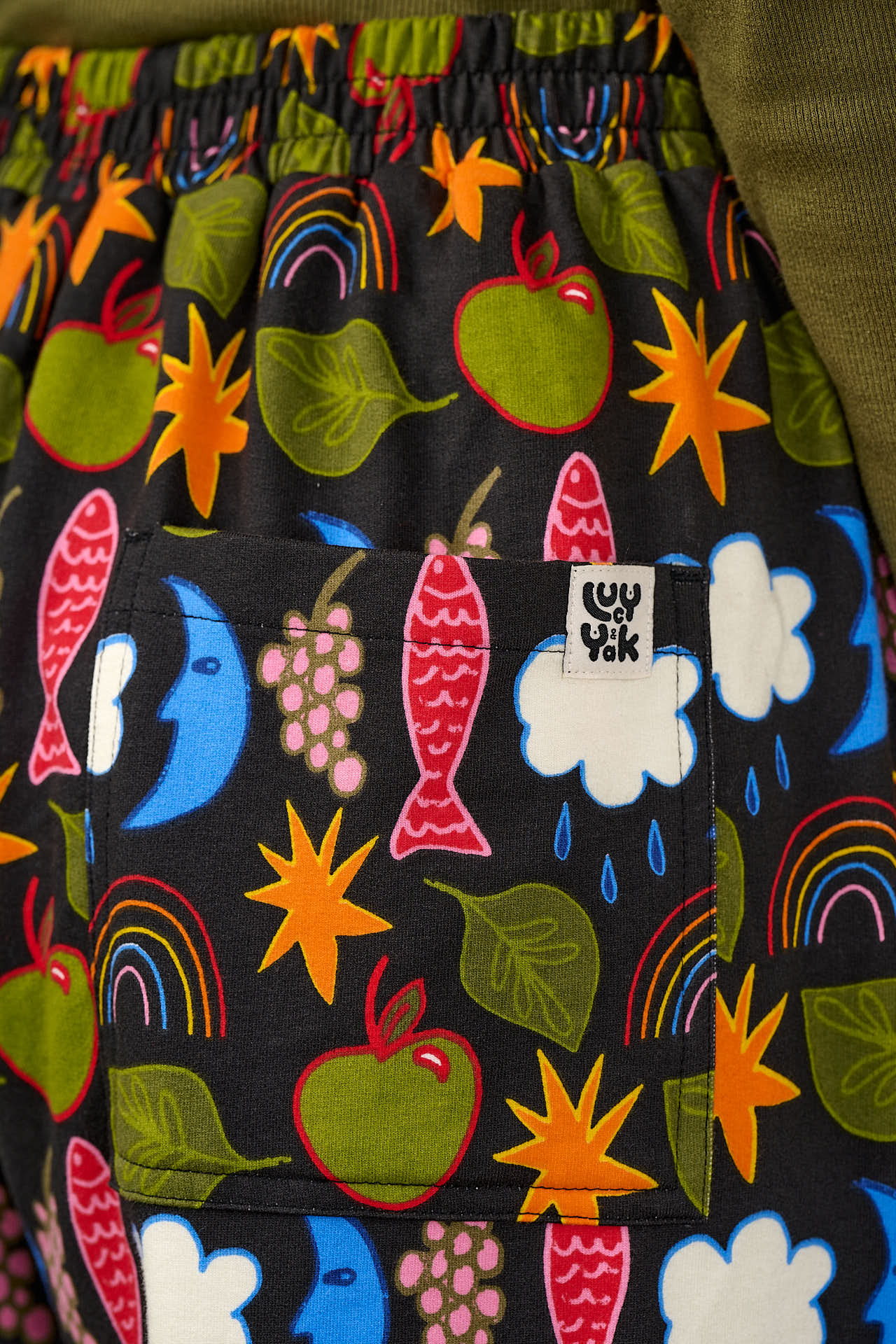 Freddie - Barrel Leg Cotton Jersey Trousers in Naive Shapes Print