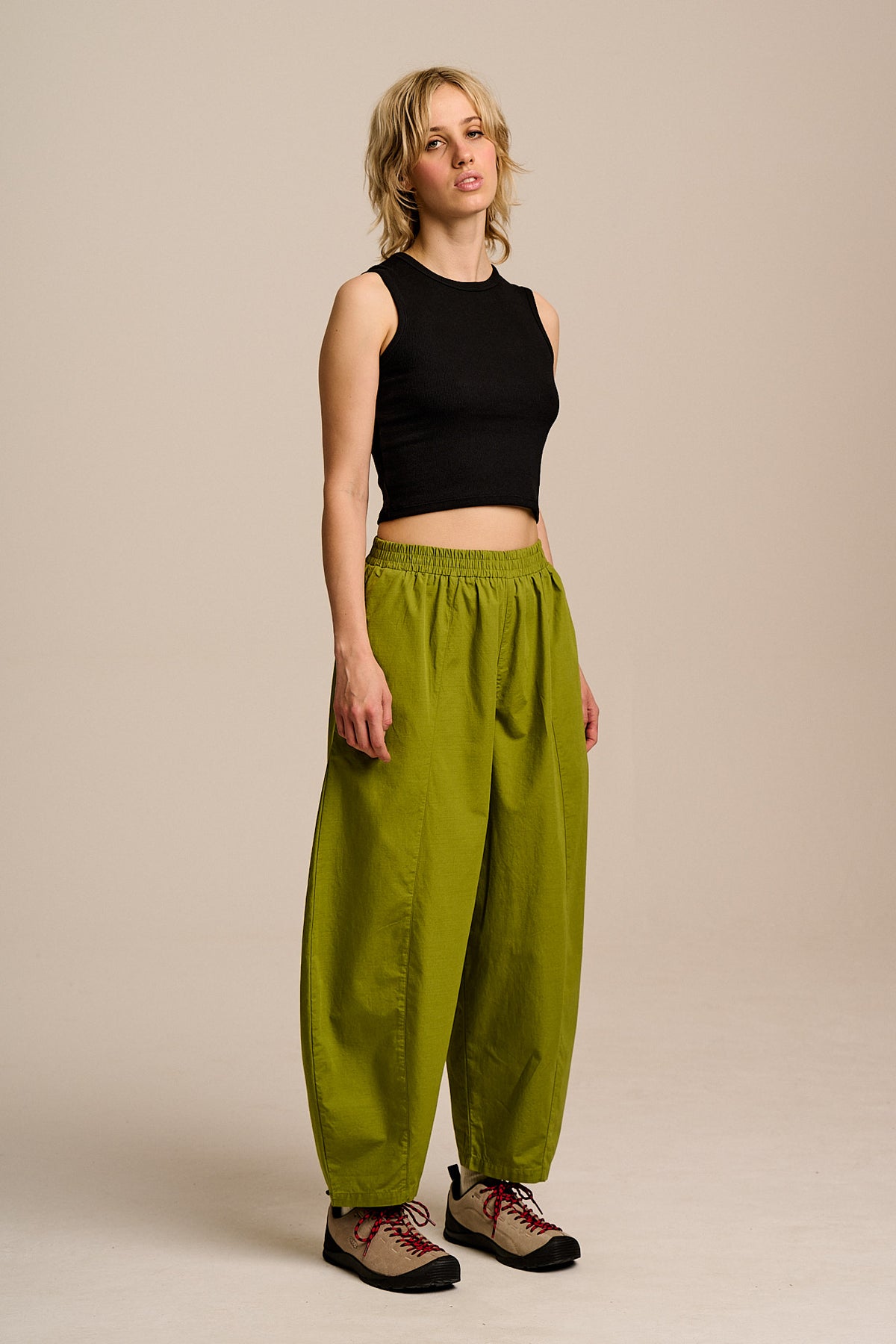 Obregon - Barrel Leg Cotton Trousers in Cypress Green