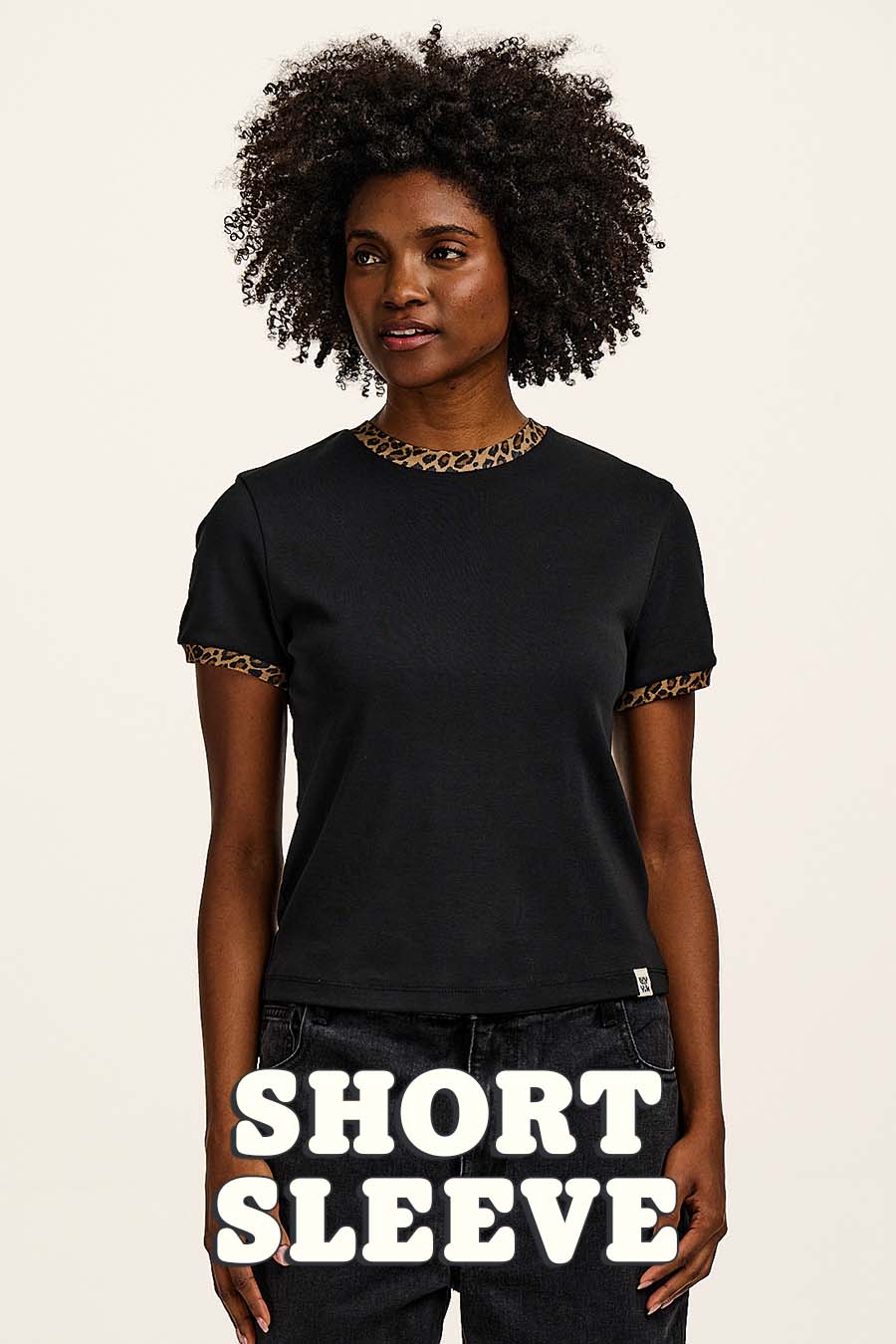 Maya - Cotton T-Shirt in Black Leopard Print