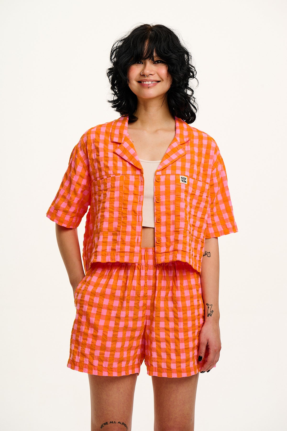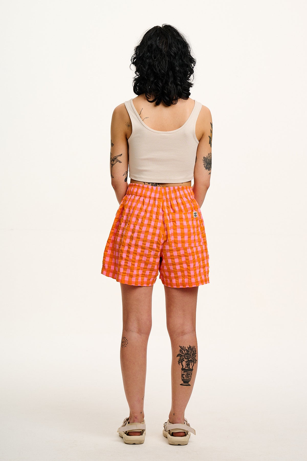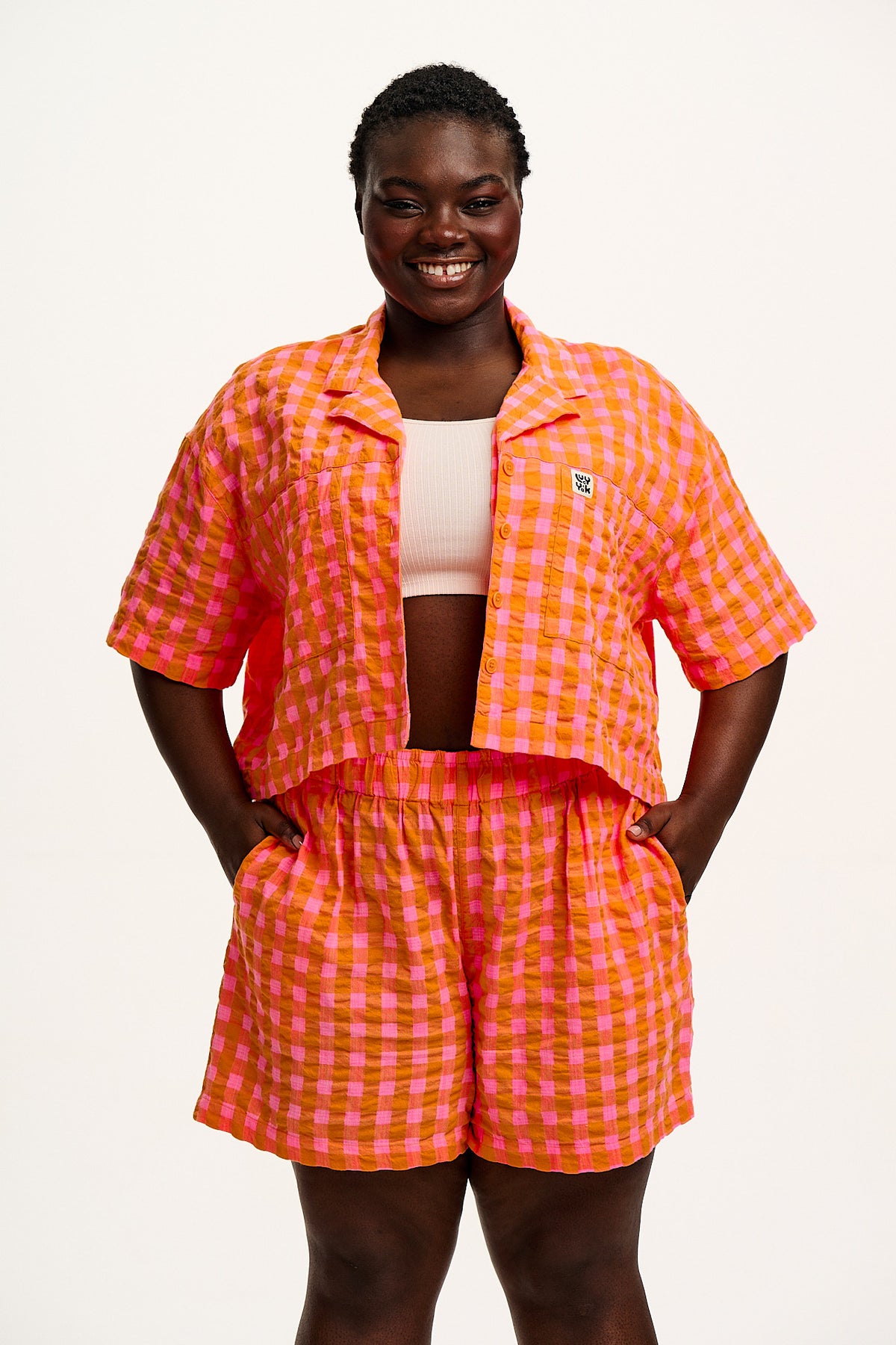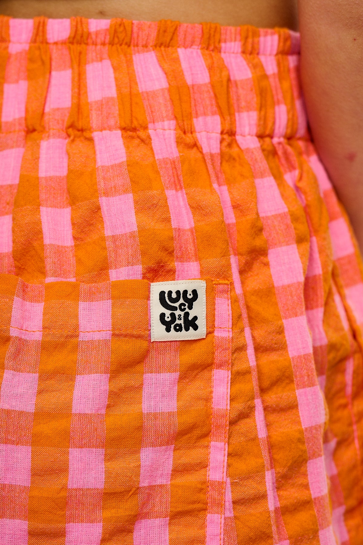 Jessie - Cotton Seersucker Shorts in Pink & Orange Gingham