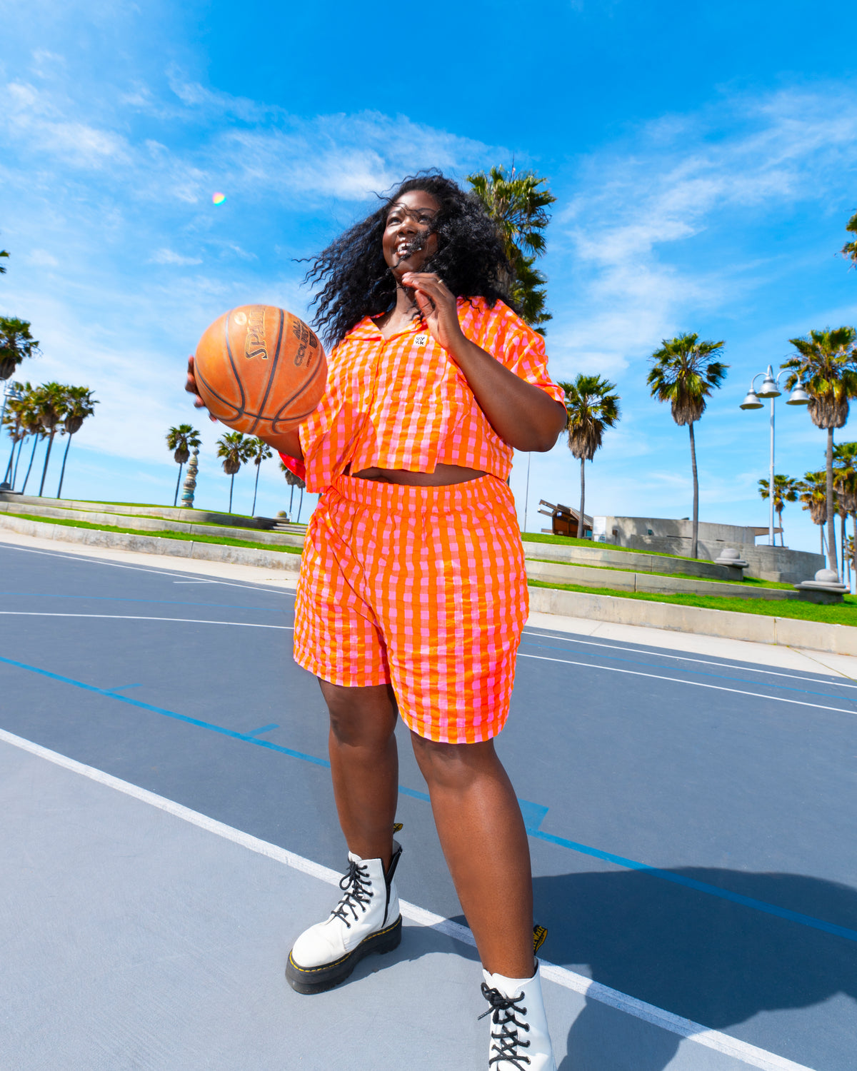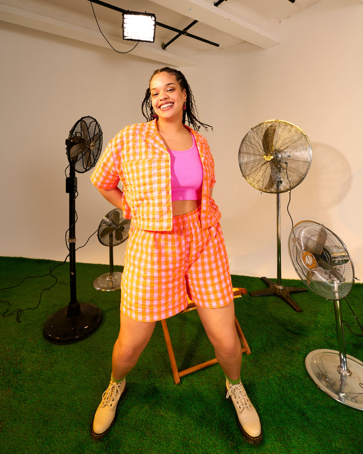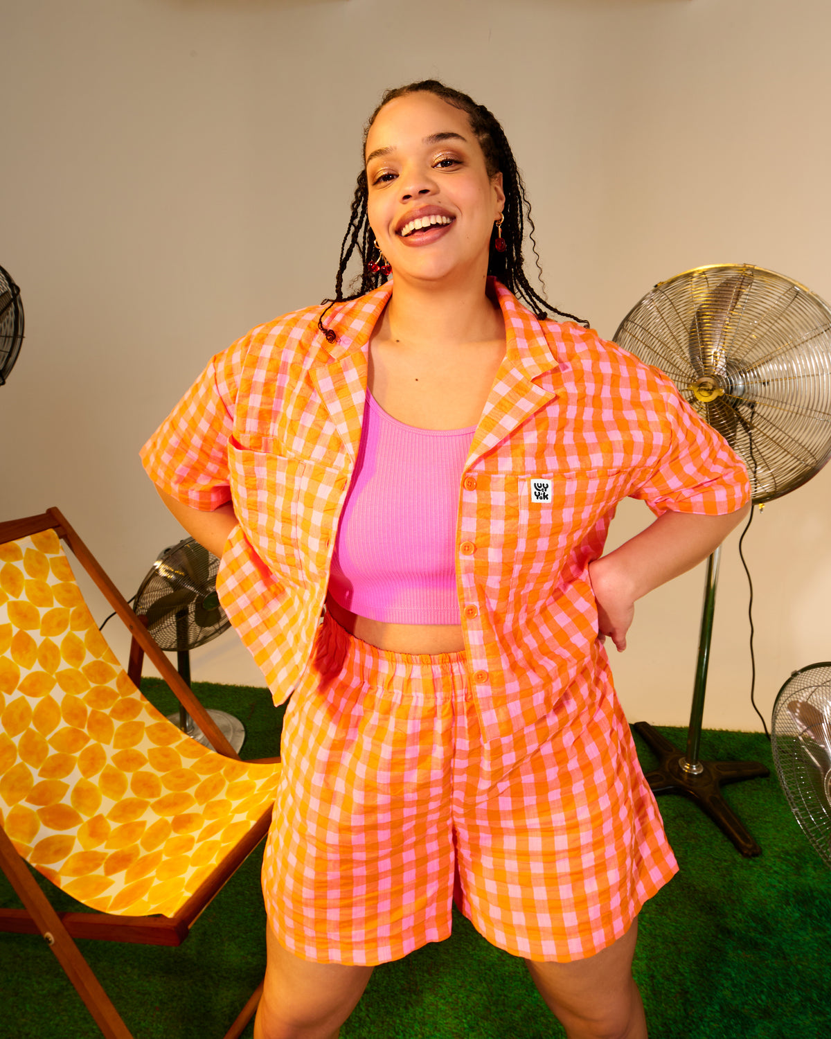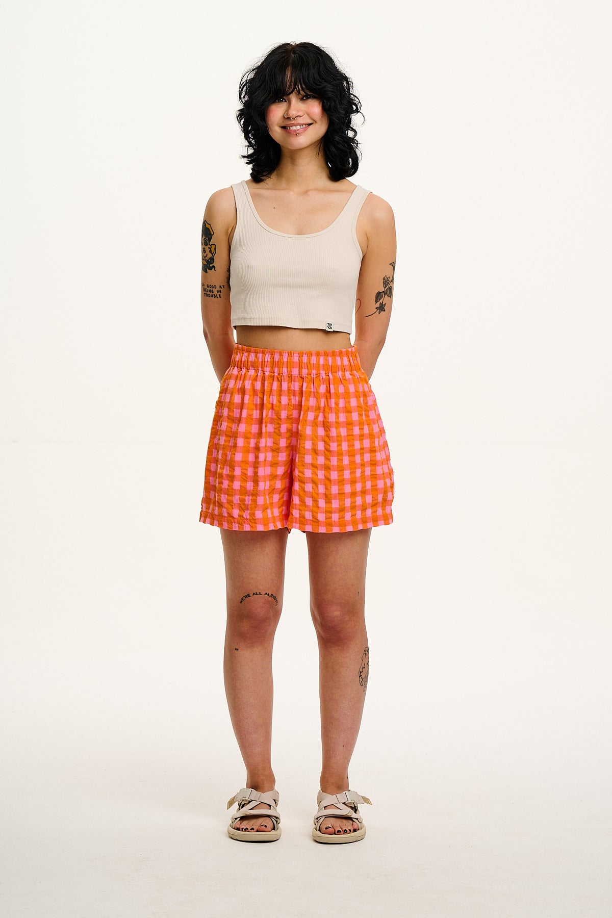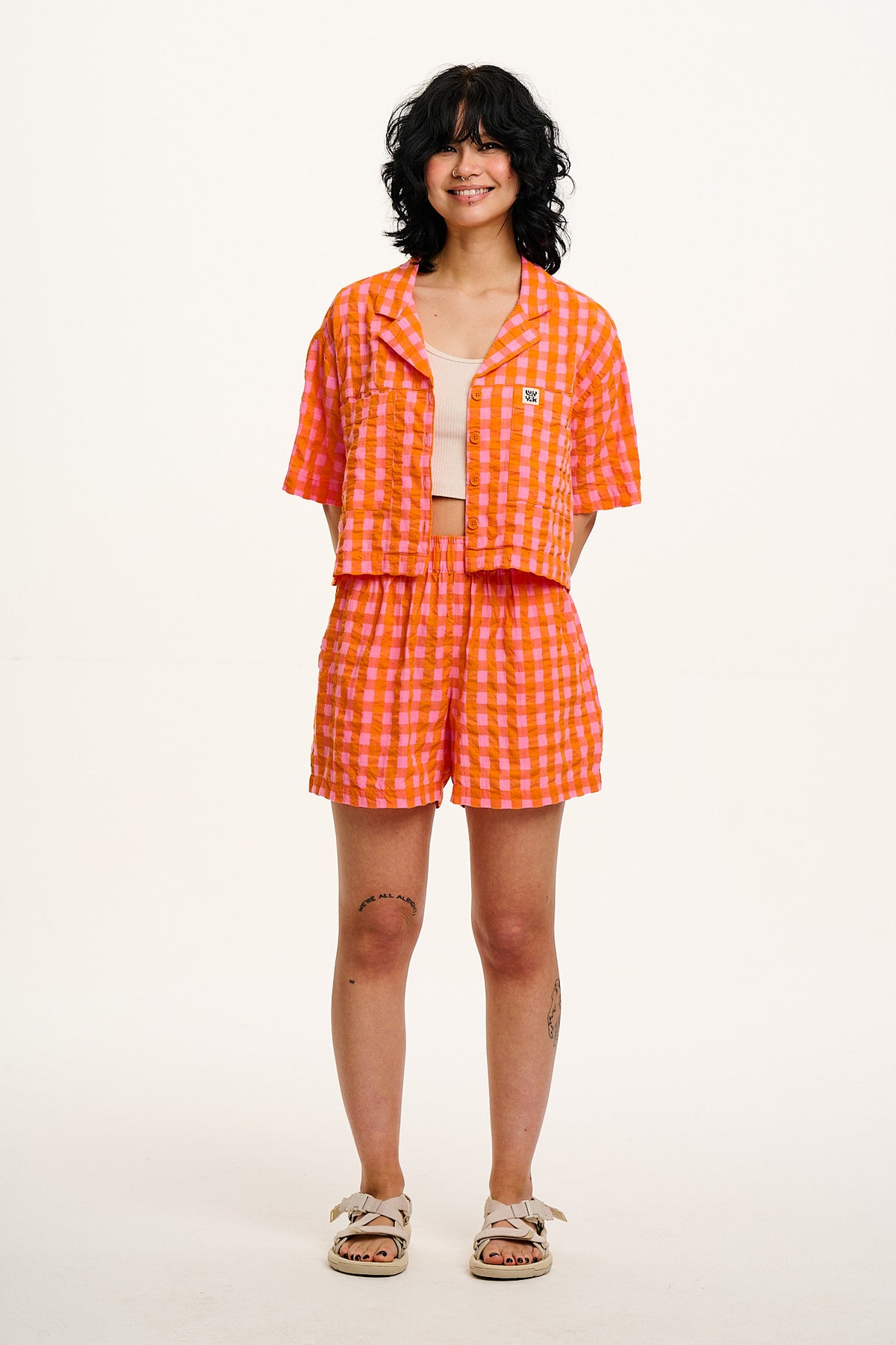 Jessie - Cotton Seersucker Shorts in Pink & Orange Gingham