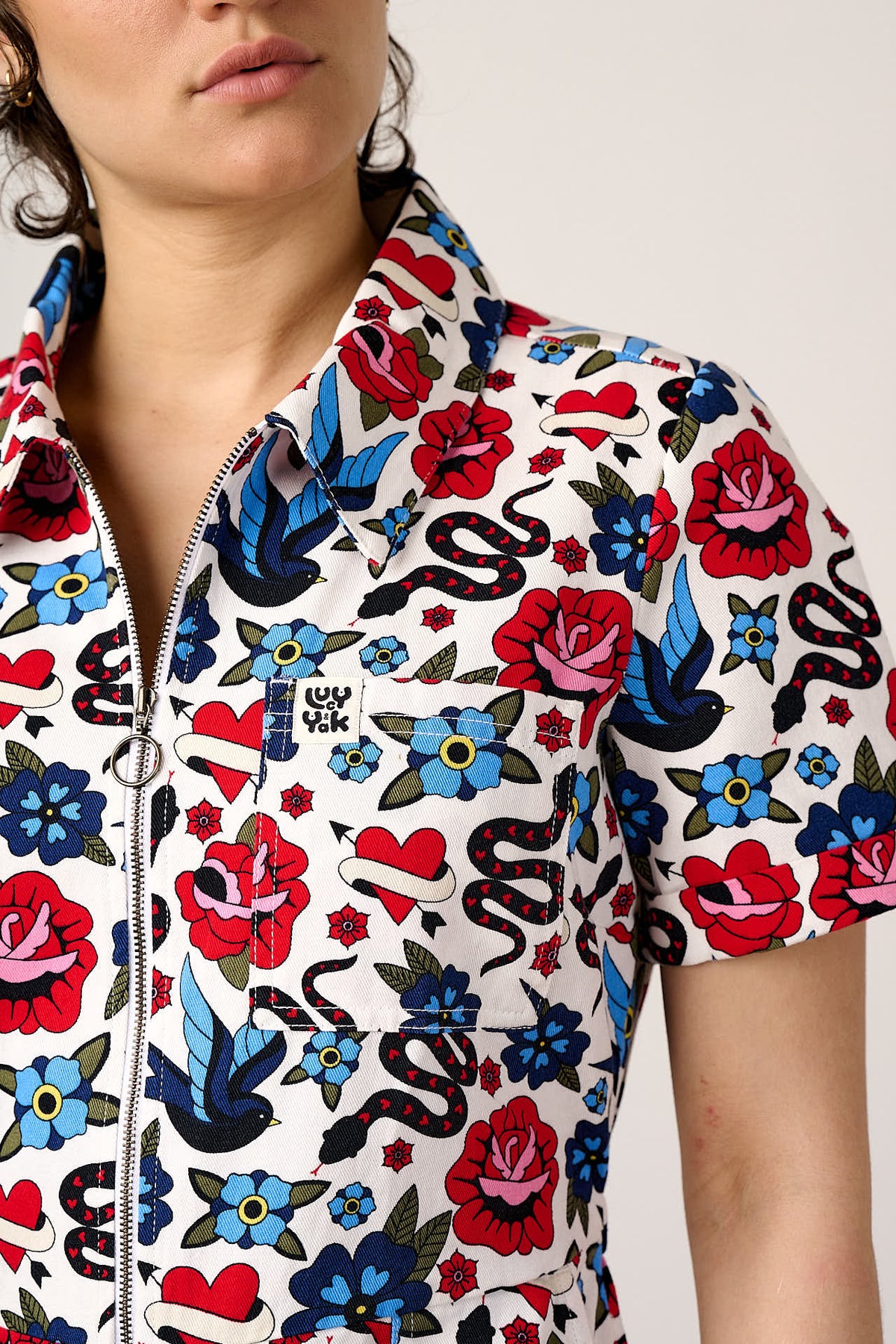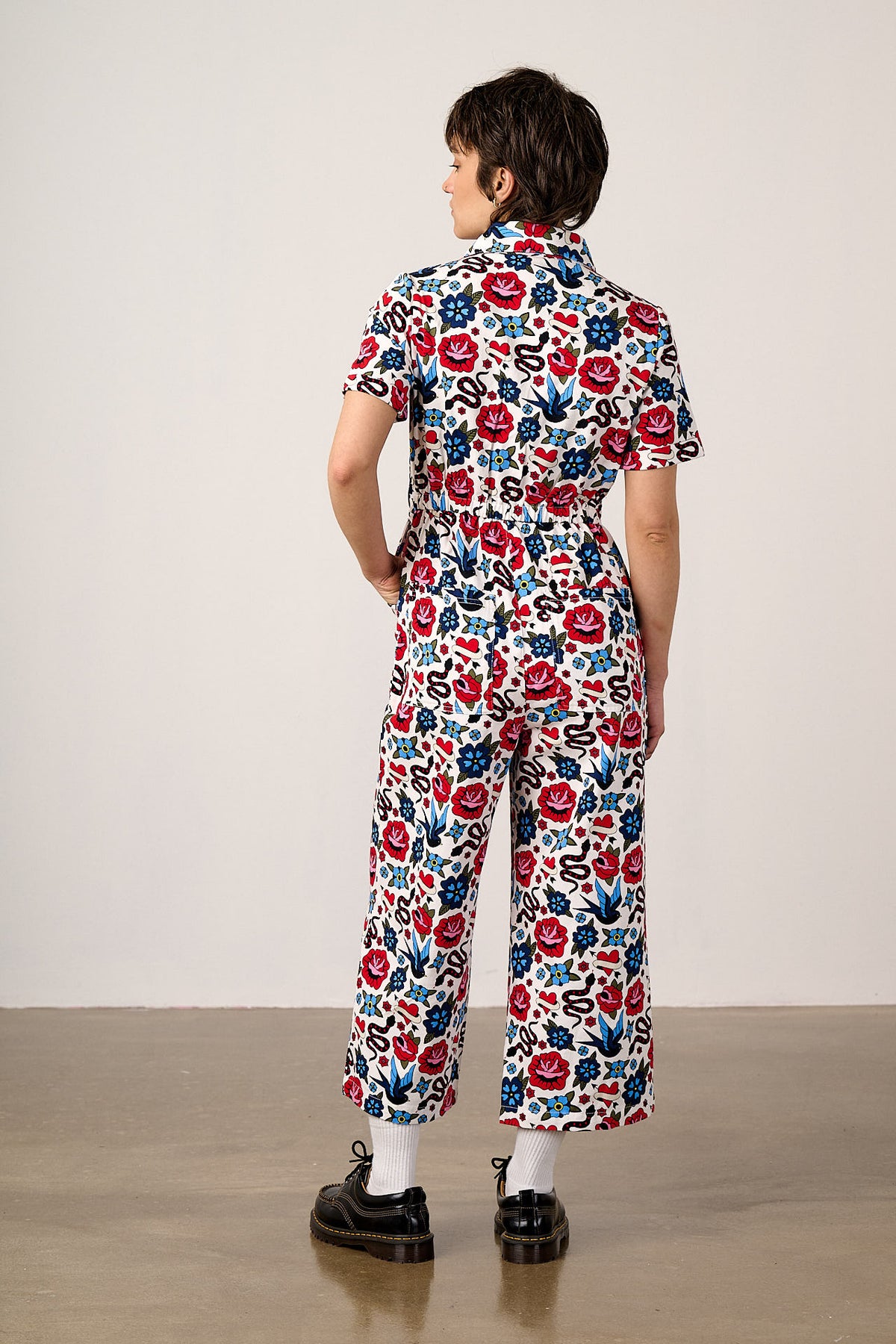 Ragan - Cotton Jumpsuit in Multi Coloured Tattoo Print