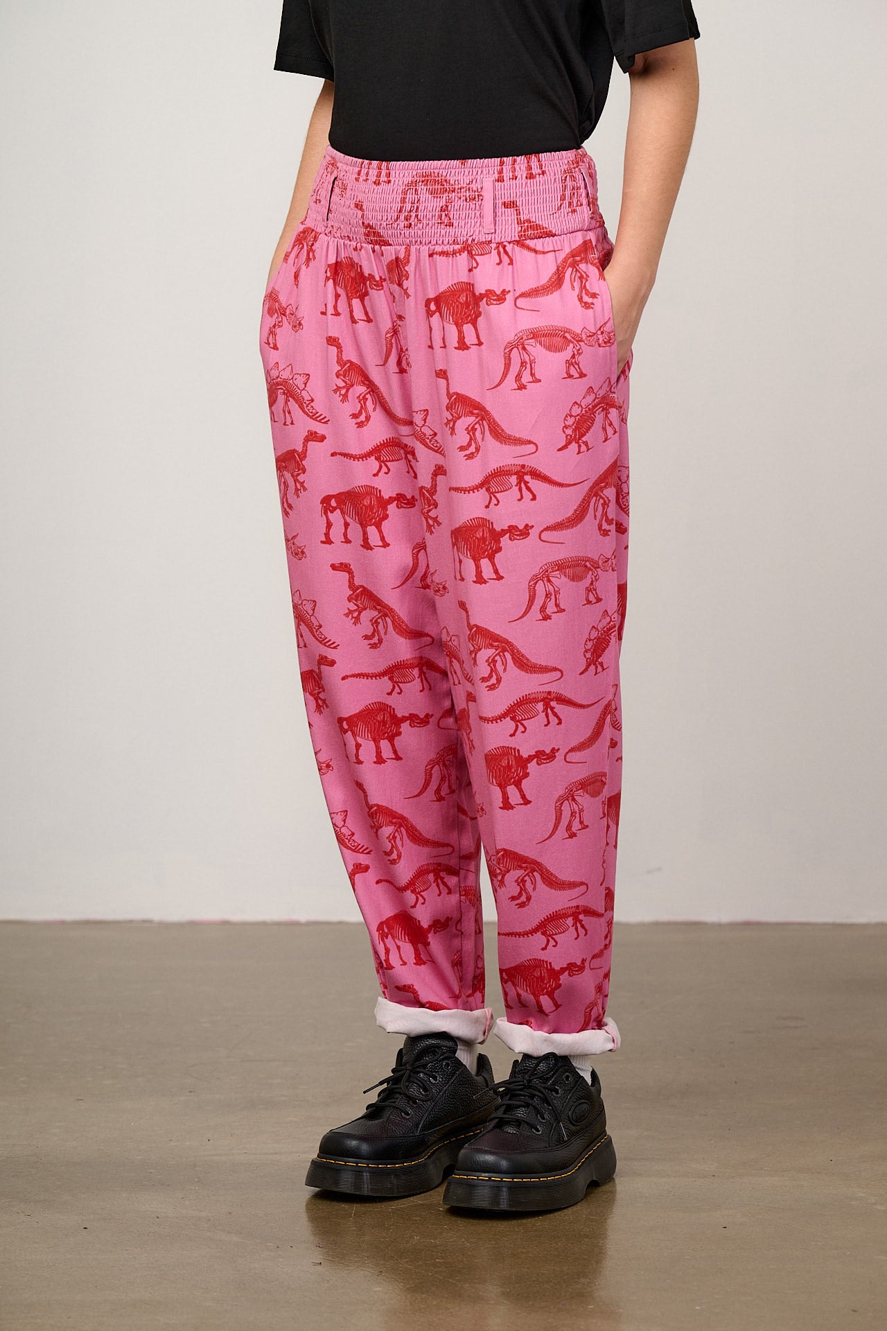L.E. Alexa - Cotton Trousers in Pink Dinosaur Natural History Museum & Yak