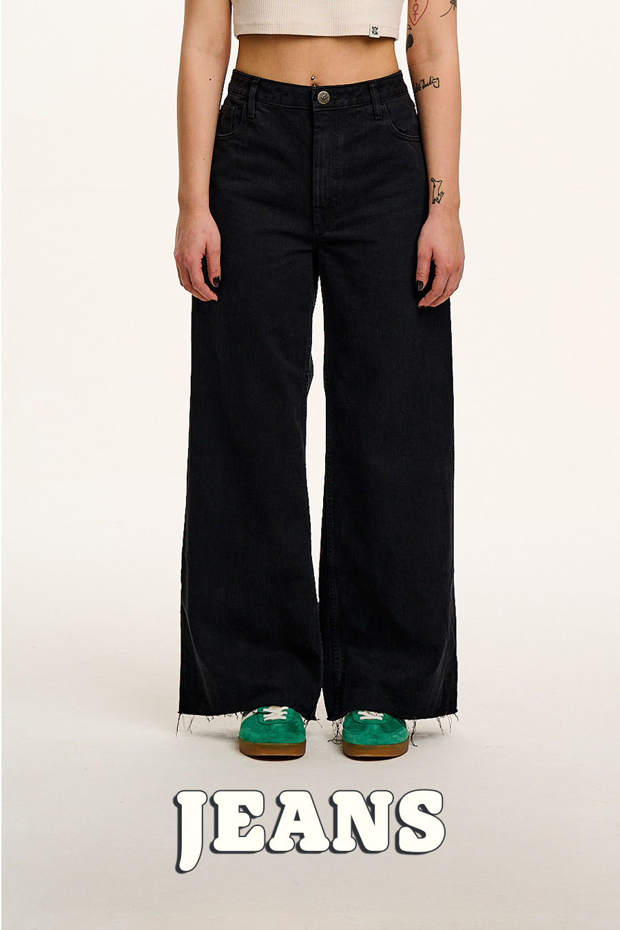 Tate - Denim Extra Wide Leg Jeans in Black Wash