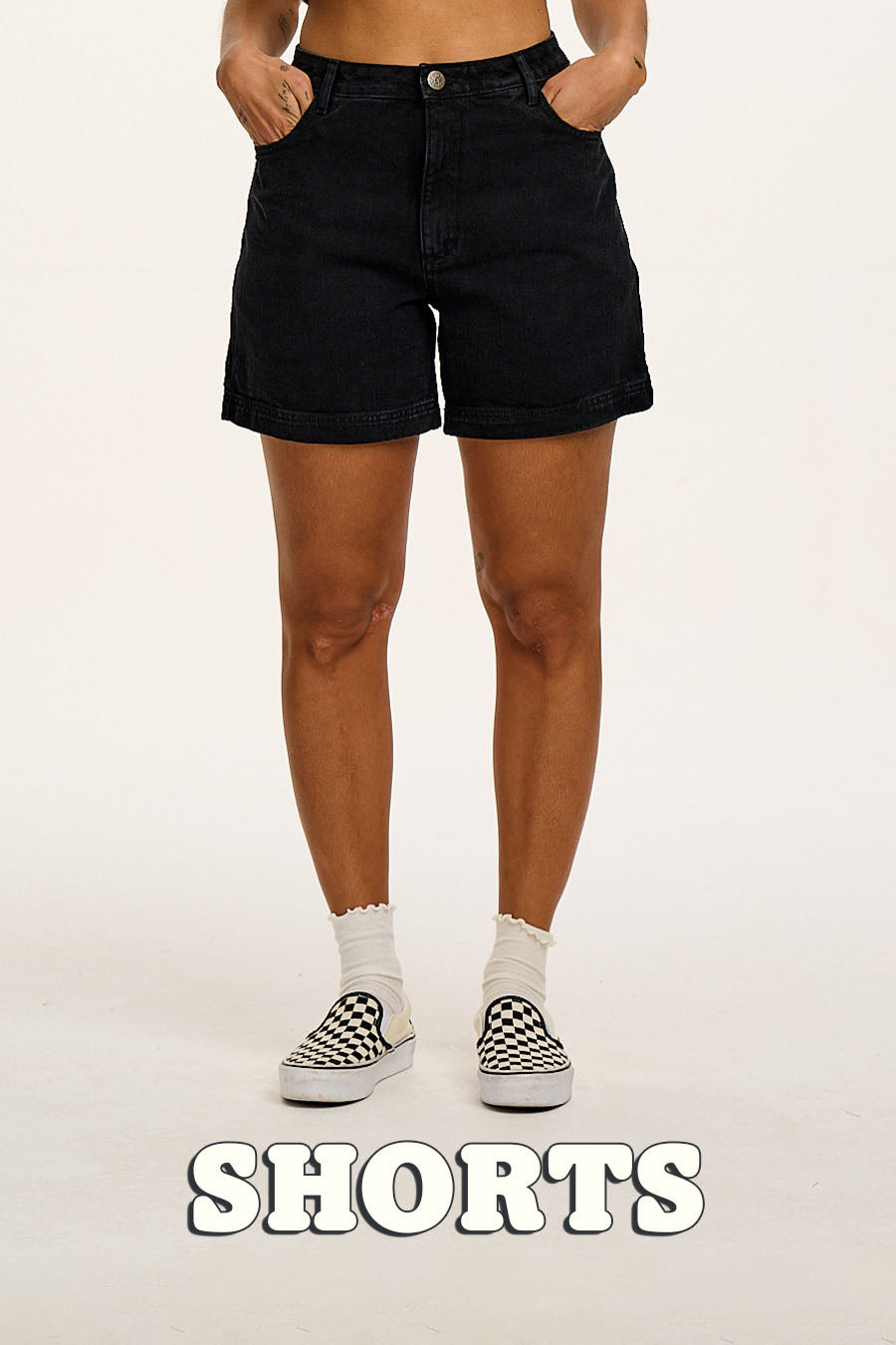 Lexi - High Waist Denim Shorts in Mid Wash Blue