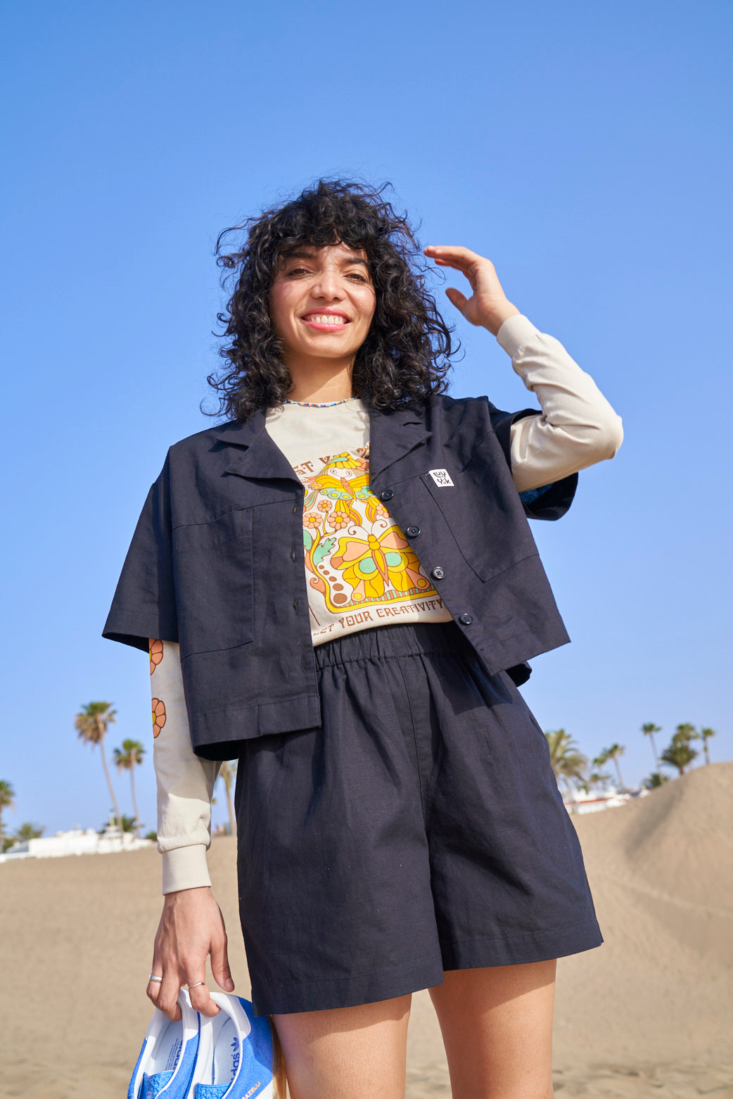 Jessie - Cotton & Linen Shorts in Black