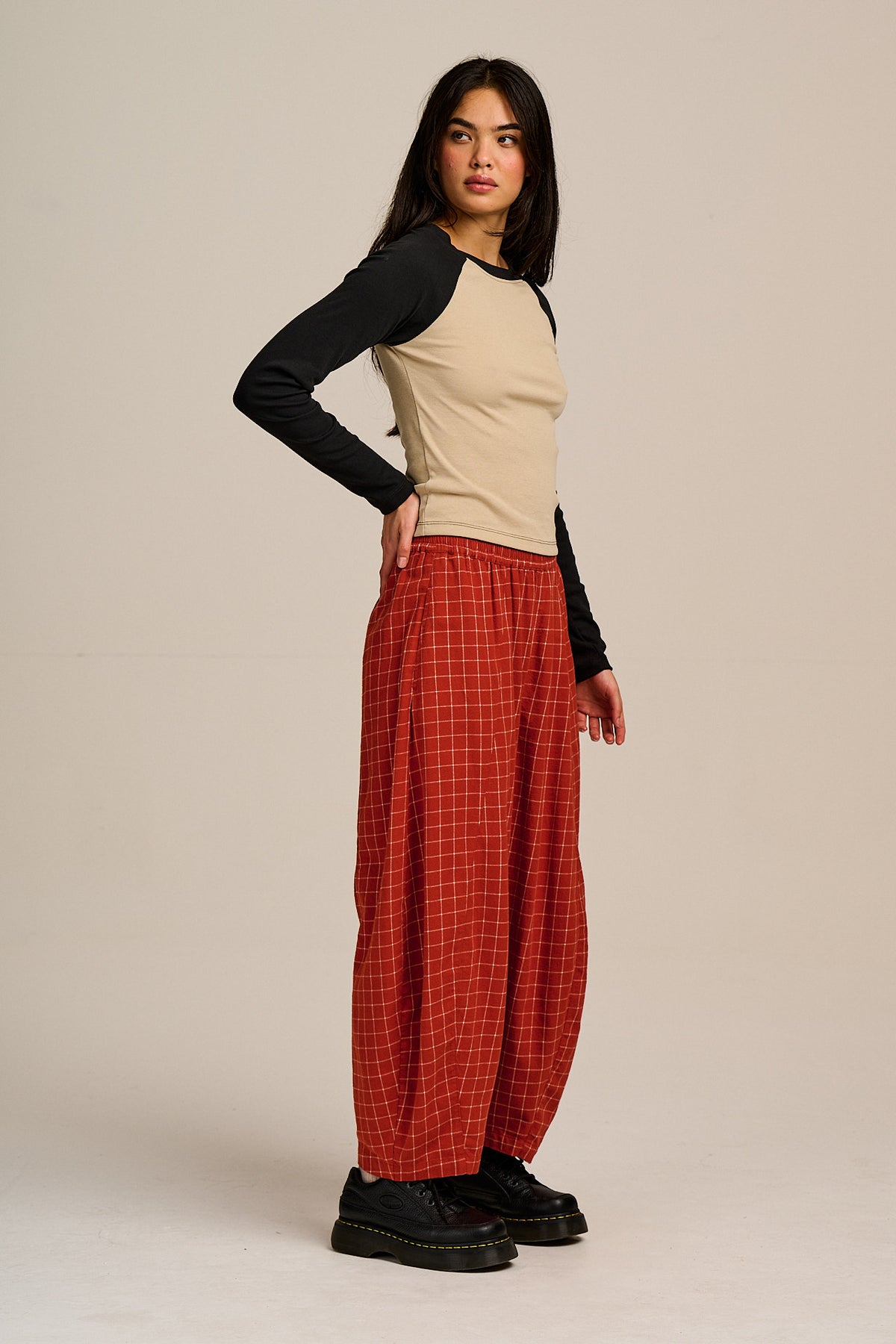 Obregon - Barrel Leg Brushed Cotton Trousers in Rust Check