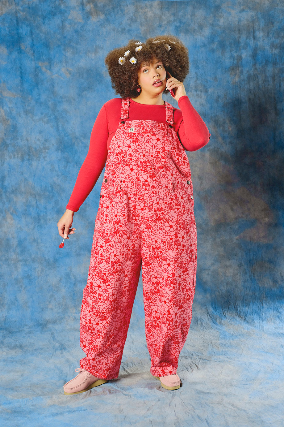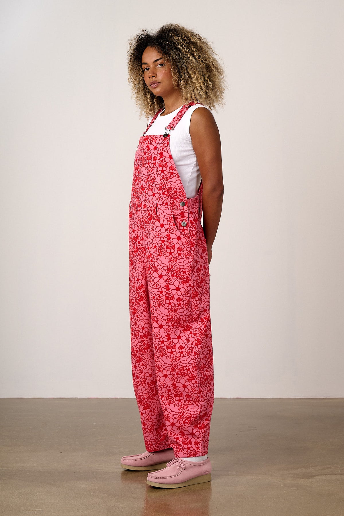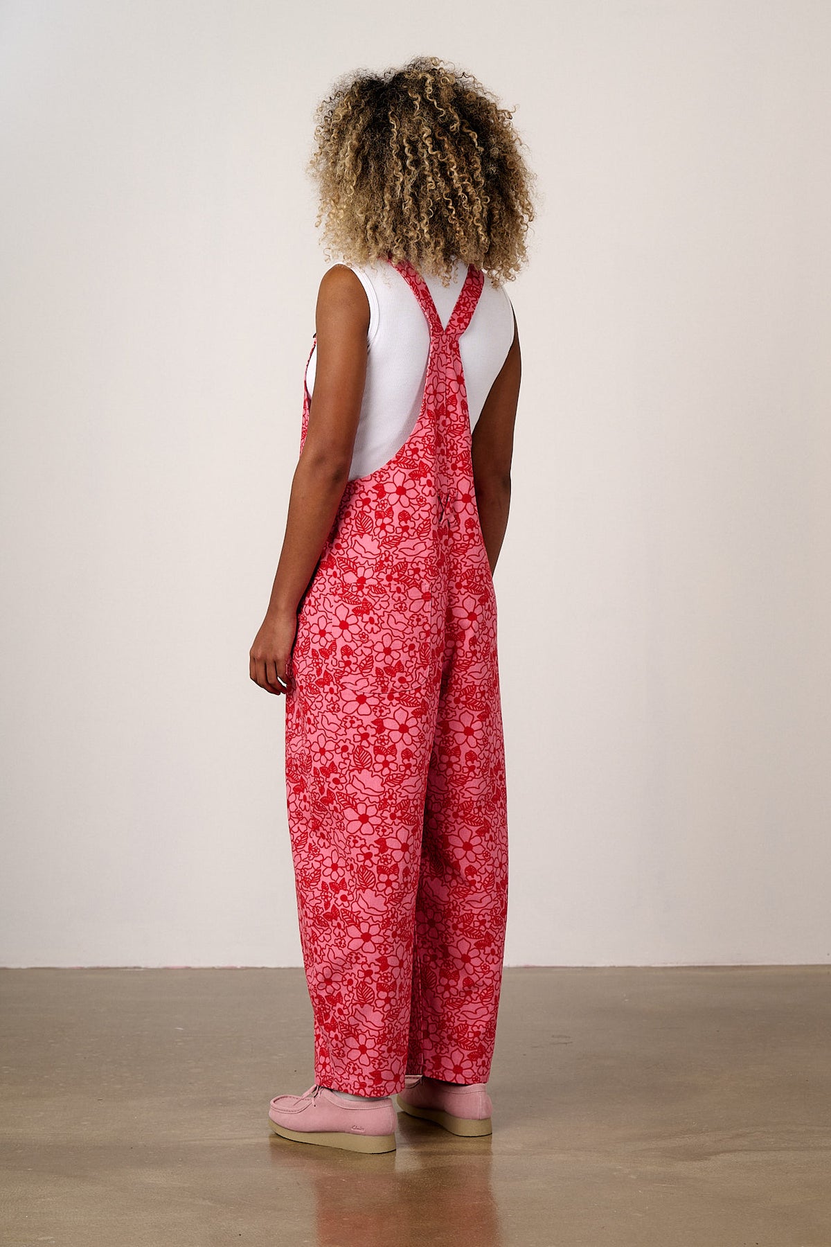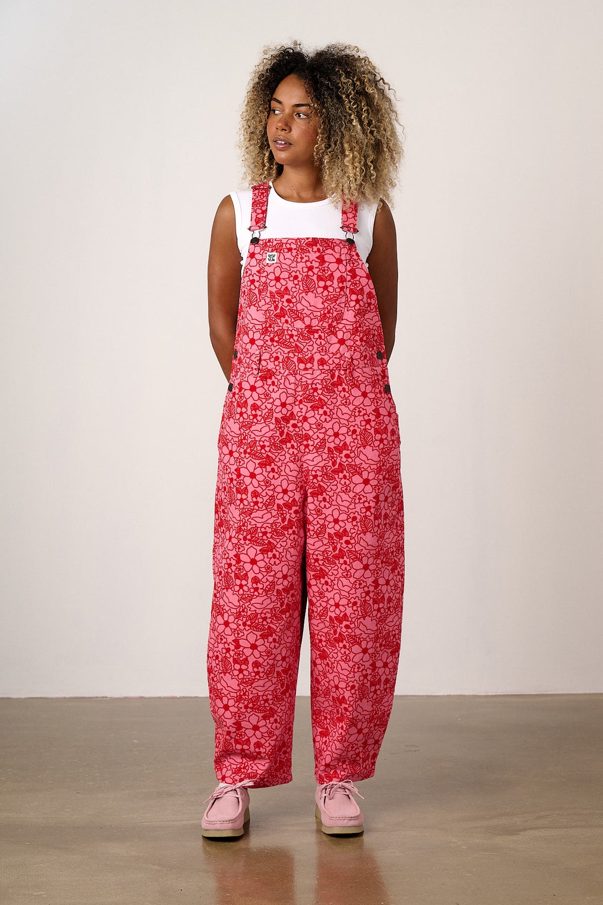 Toluca - Cotton Barrel Leg Dungarees in Pink & Red Kahlo Bloom