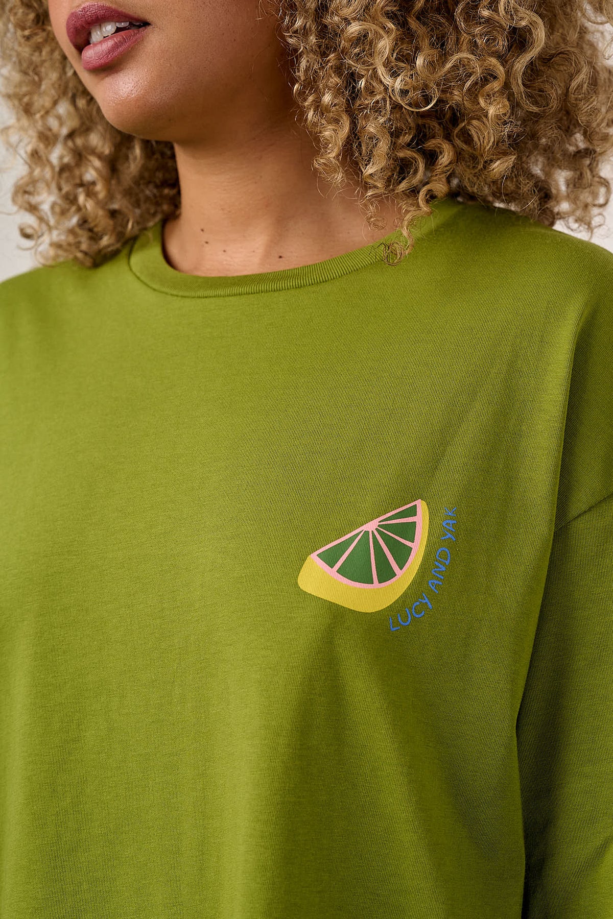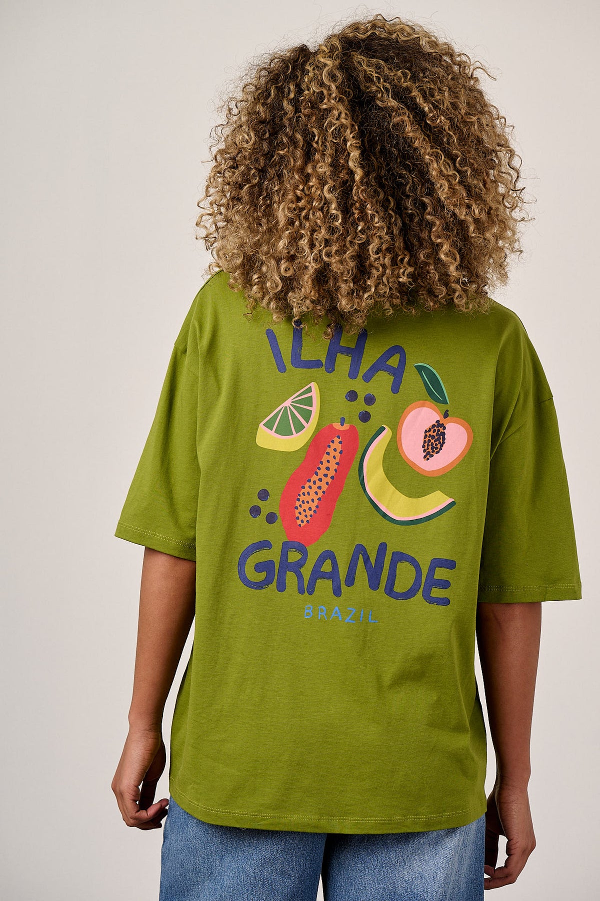 Benny - Oversized Cotton T-Shirt in Green Ilha Grande Print