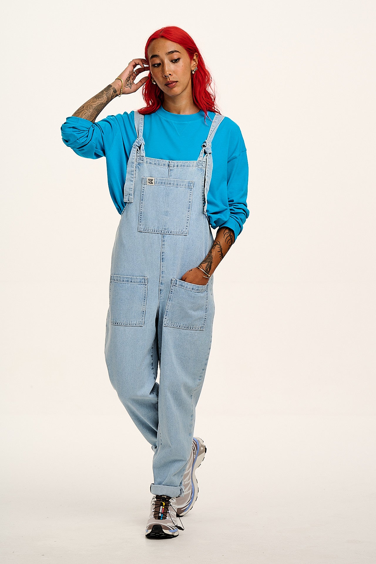 Murat - Long Sleeve Lightweight Cotton T-Shirt in Hawaiian Blue