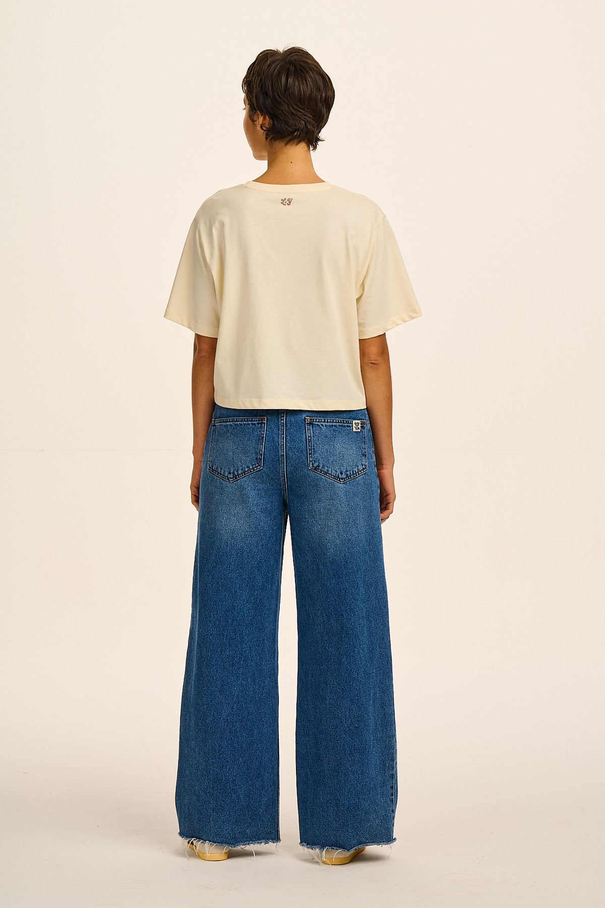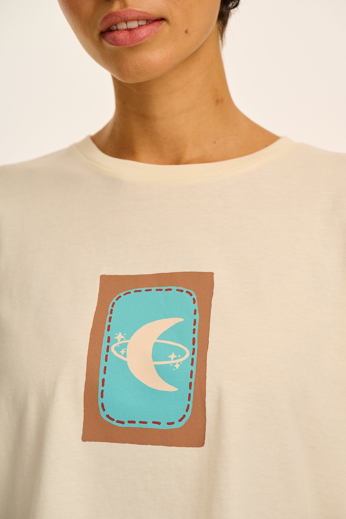 Zayla - Cropped Boxy T-Shirt in Ecru New Moon Print