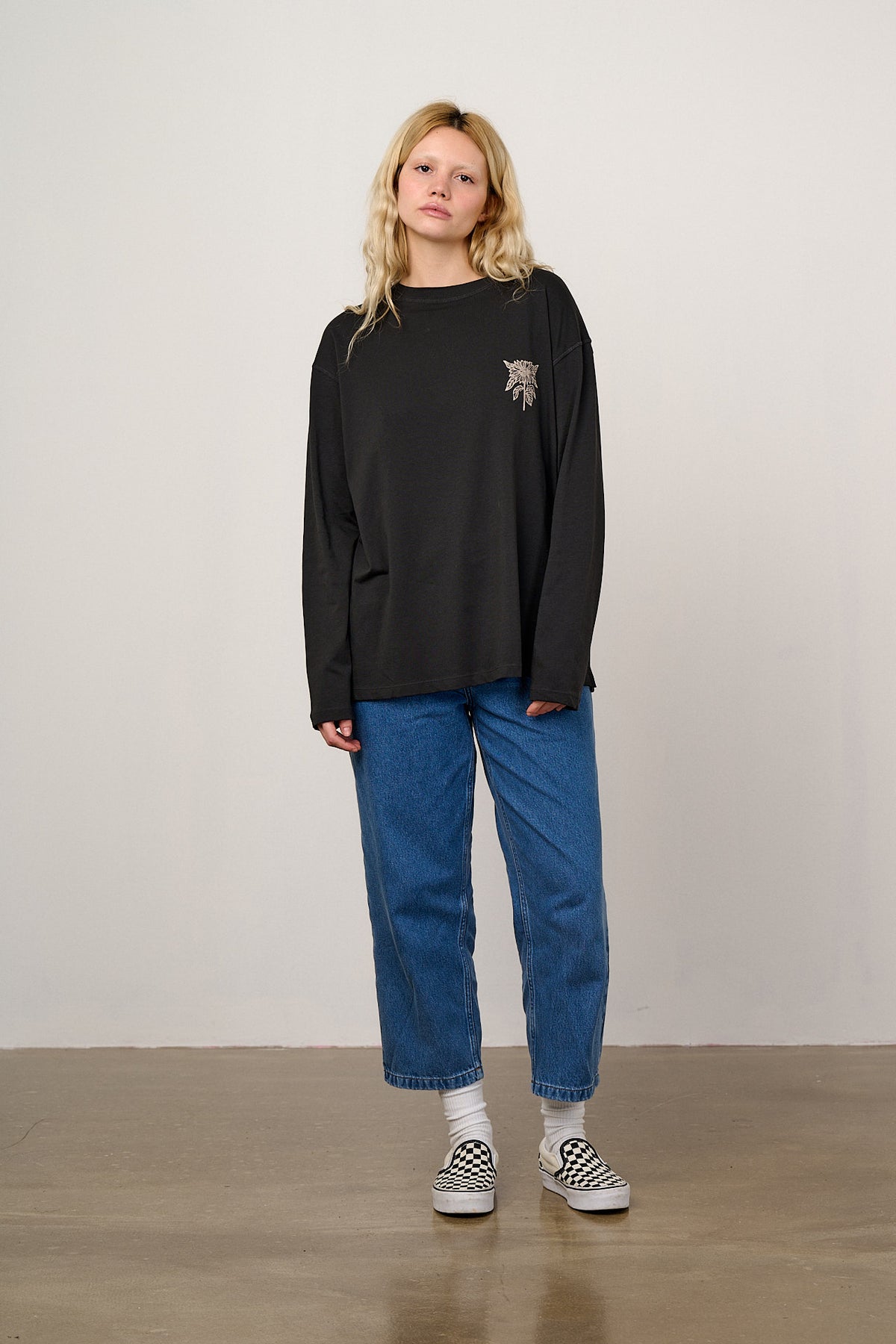 Murat - Long Sleeve Lightweight Cotton T-Shirt in Black & White Sunflower Print