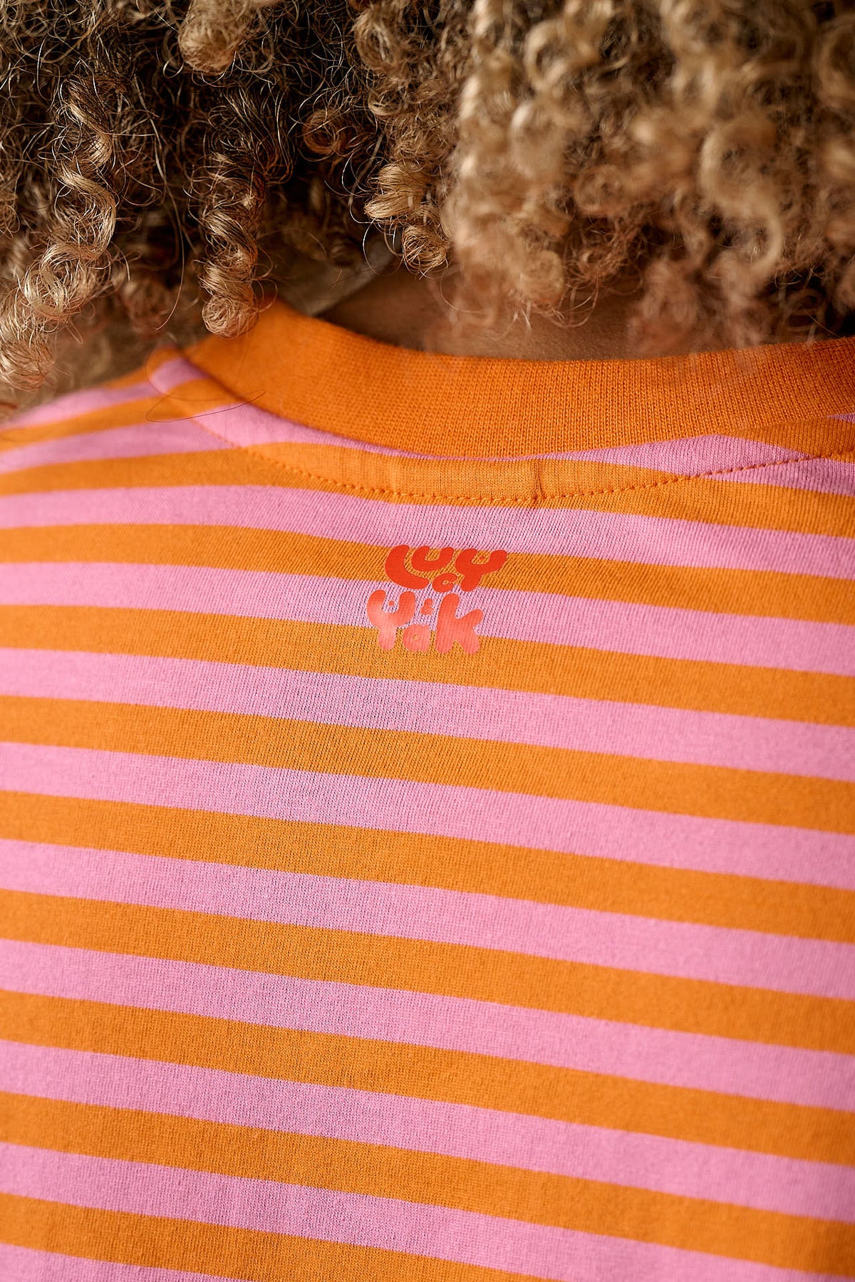 Mysen - Long Sleeve Cotton T-Shirt in Pink & Orange Stripe