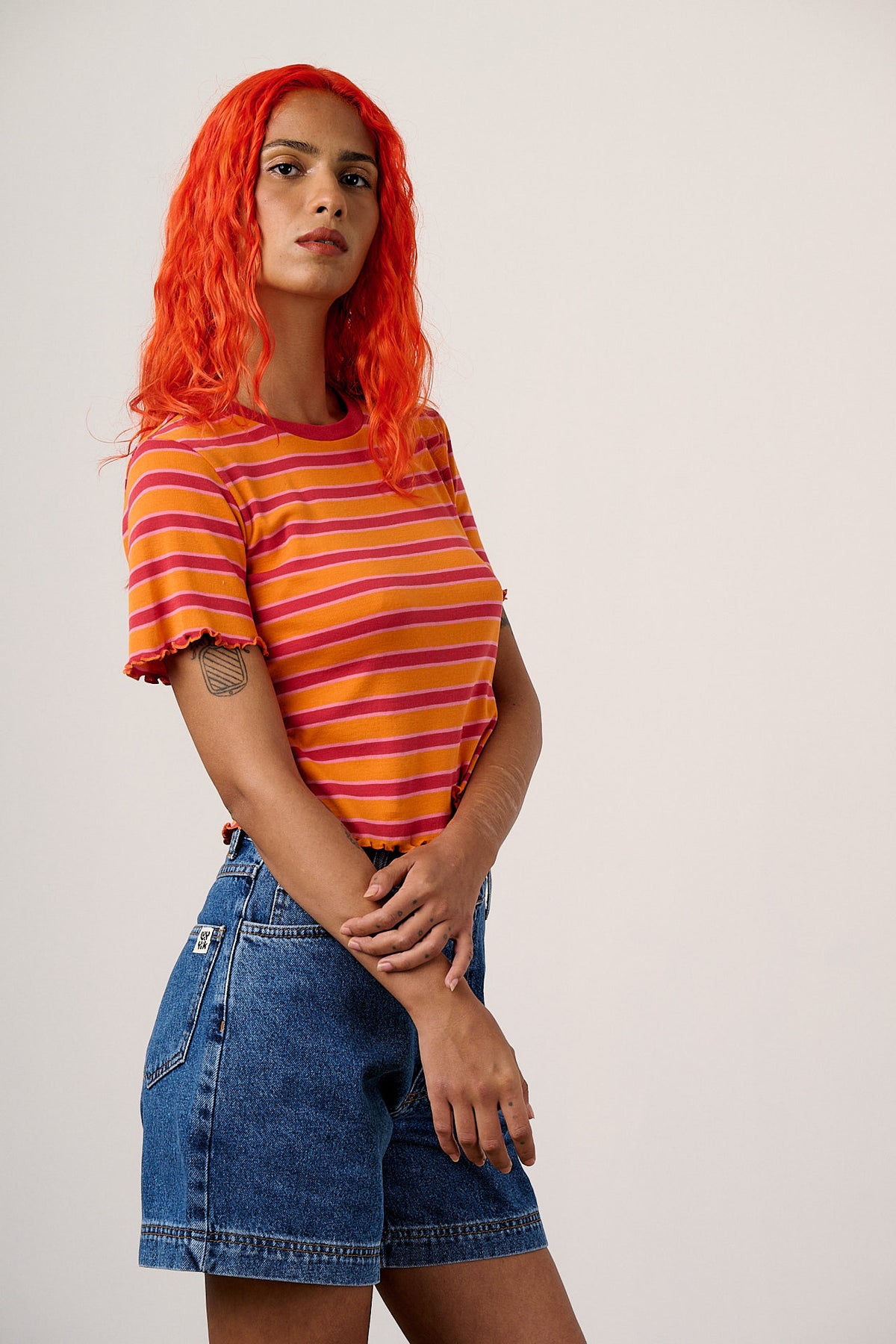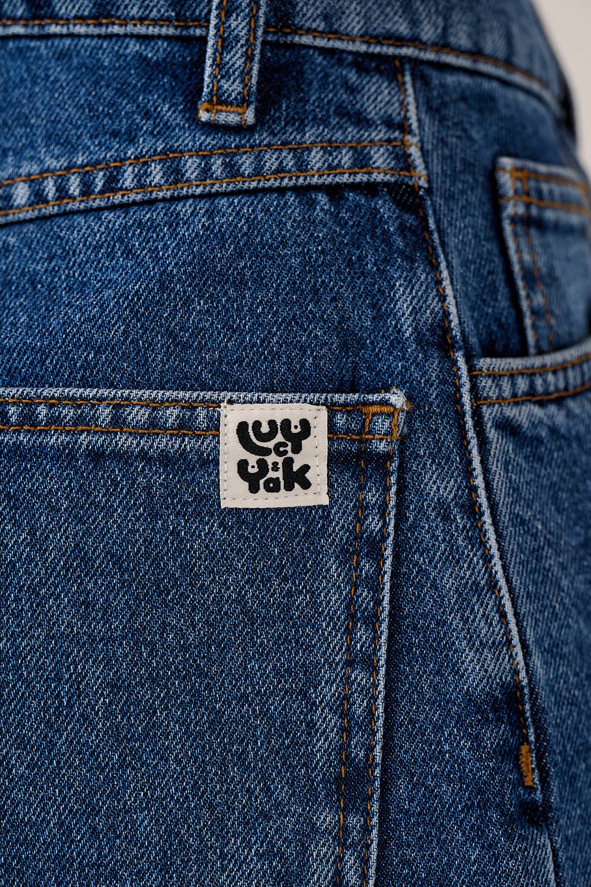 Lexi - Denim High Waist Shorts in Mid Wash Blue