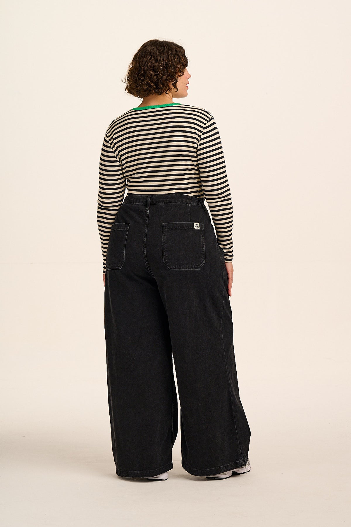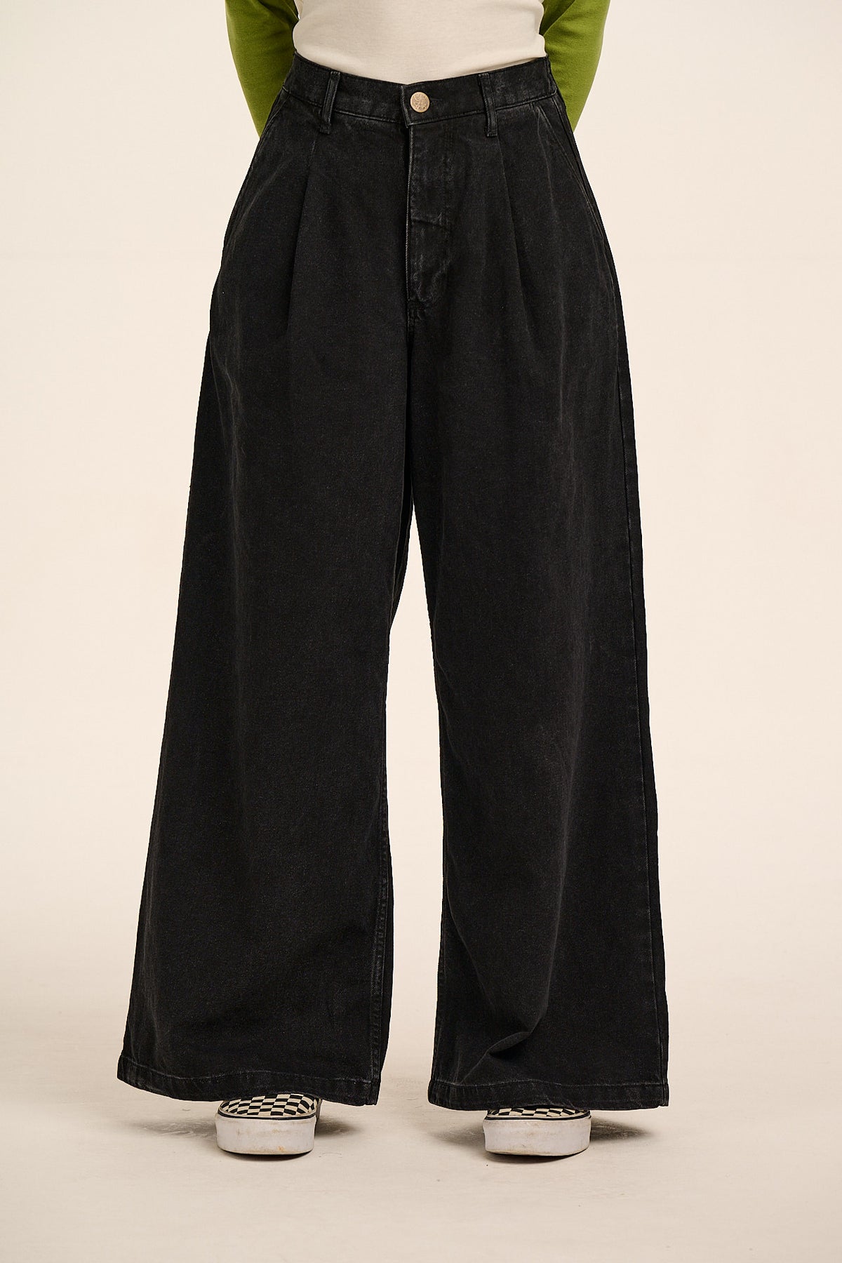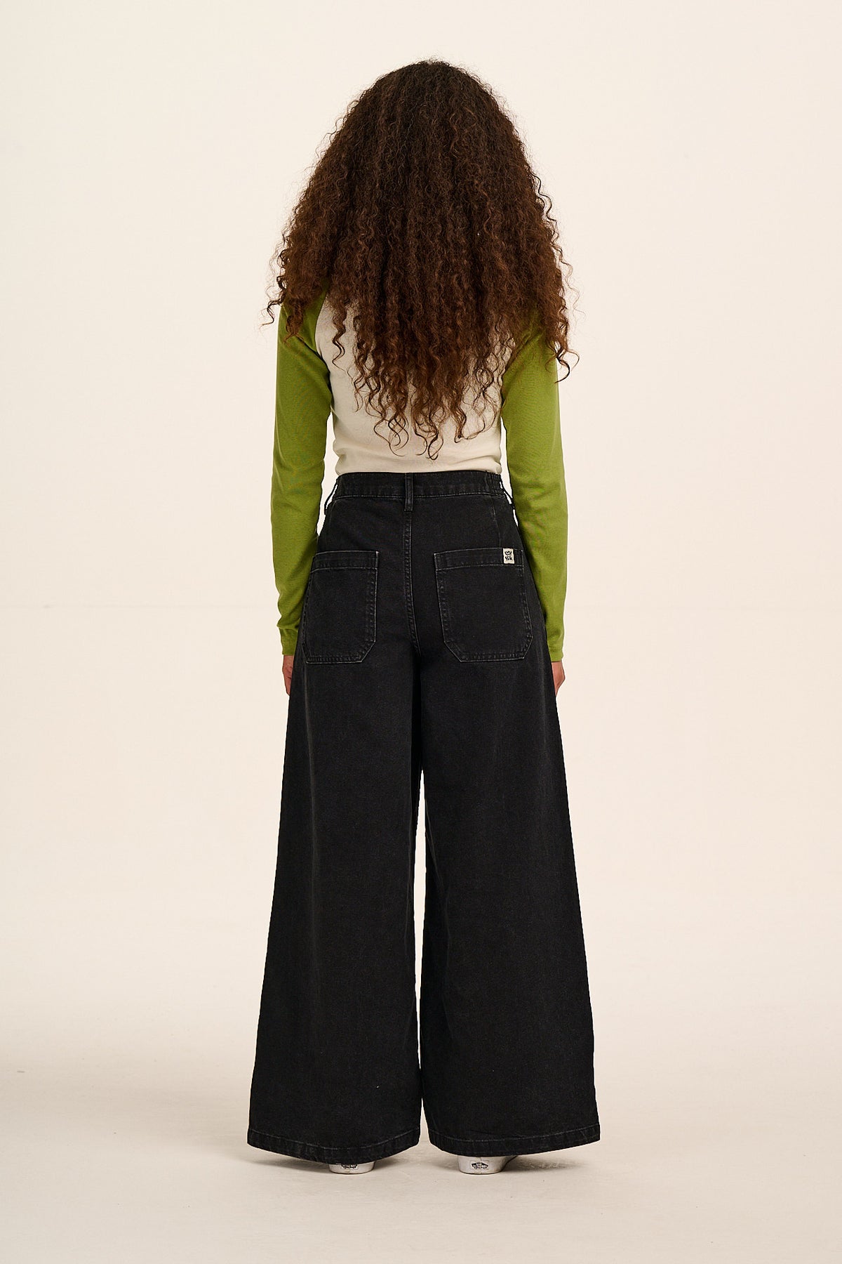 Tate - Denim Extra Wide Leg Jeans in Black Wash