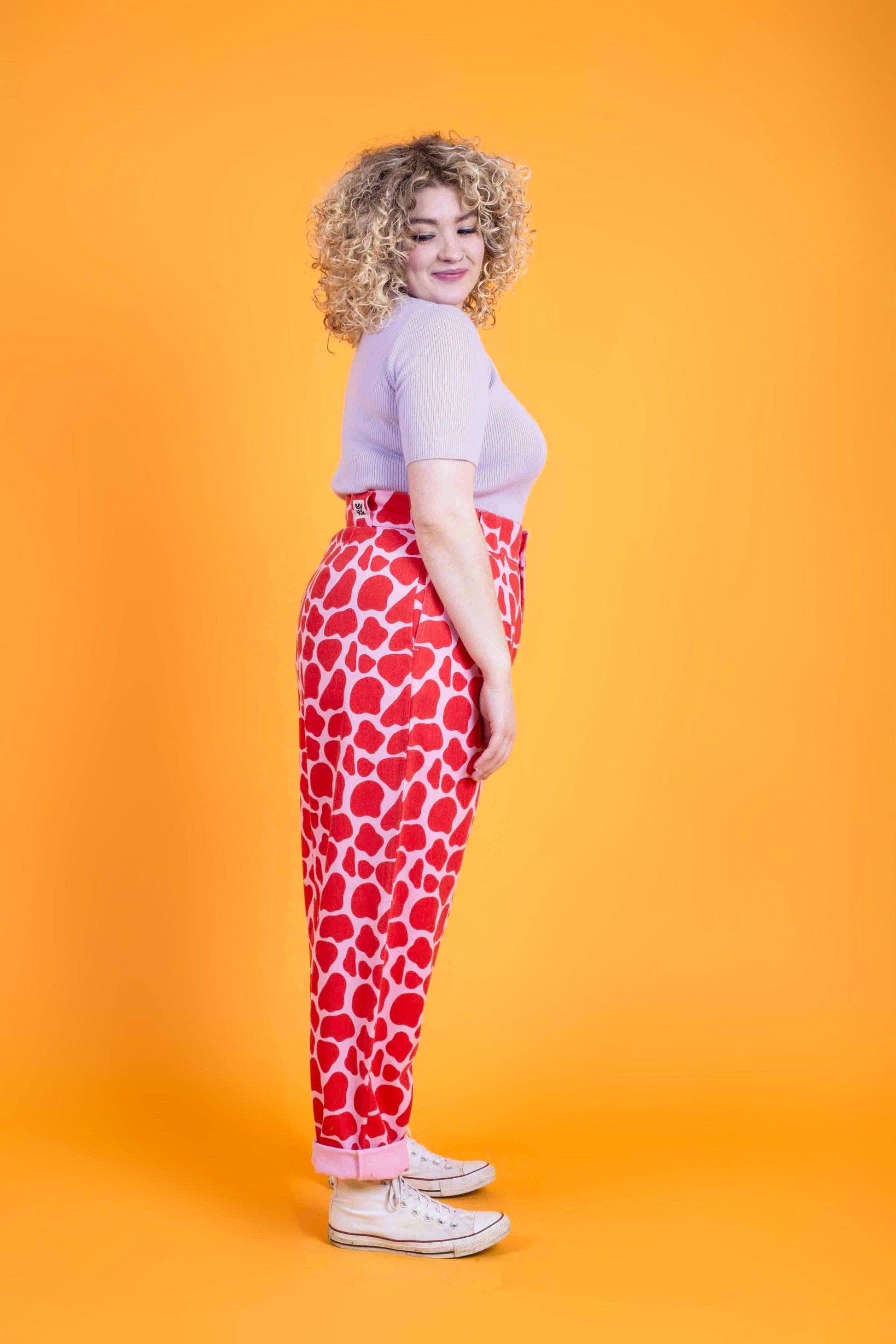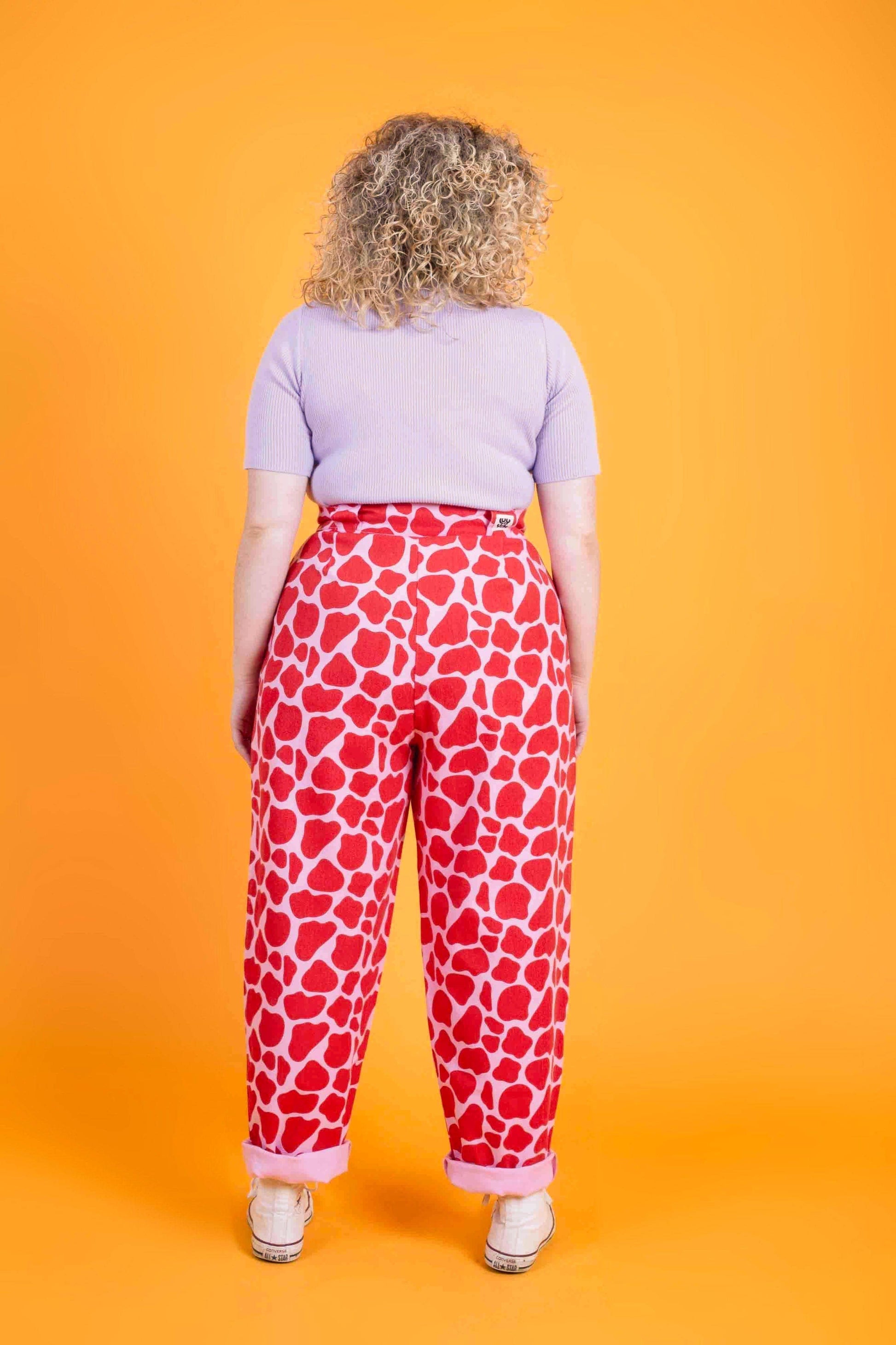 Addison - High Waisted Organic Cotton Twill Trousers in Jude Print