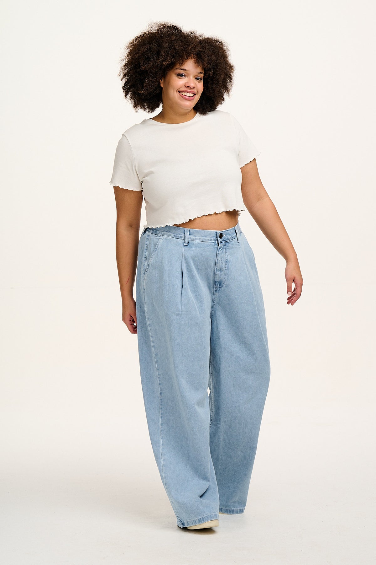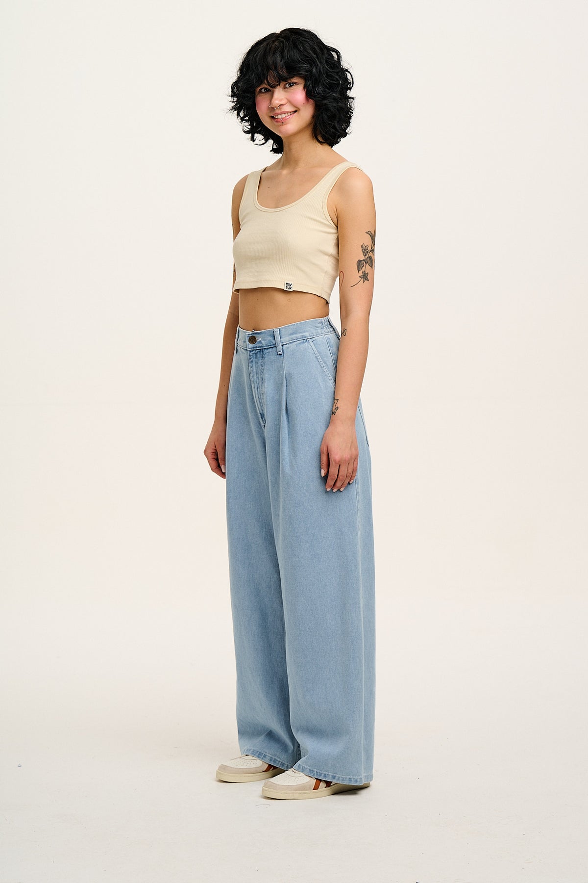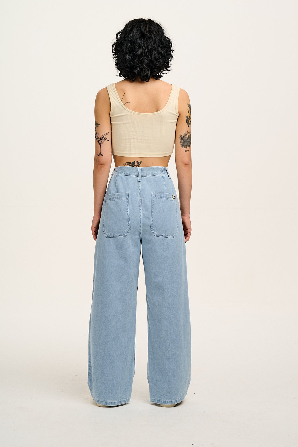 Cole - Wide Leg Denim Jeans in Light Wash Blue