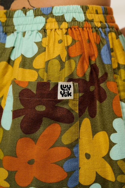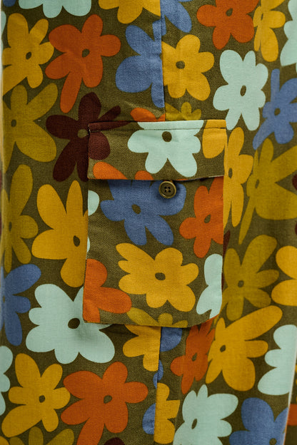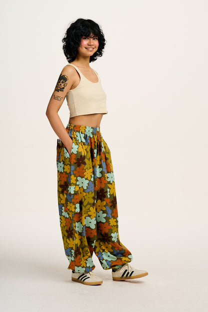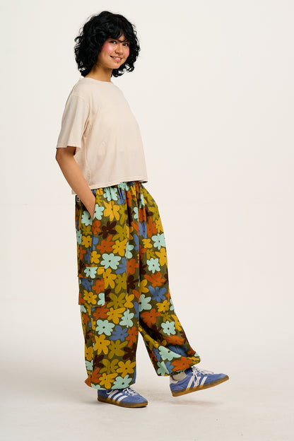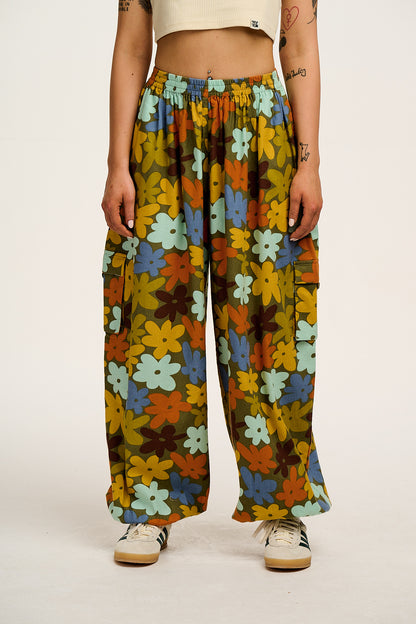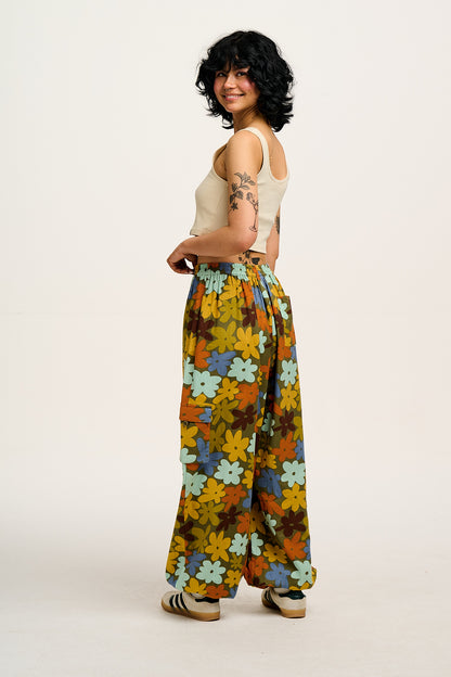 Rumi - Cargo Brushed Cotton Trousers in Bubble Floral Print