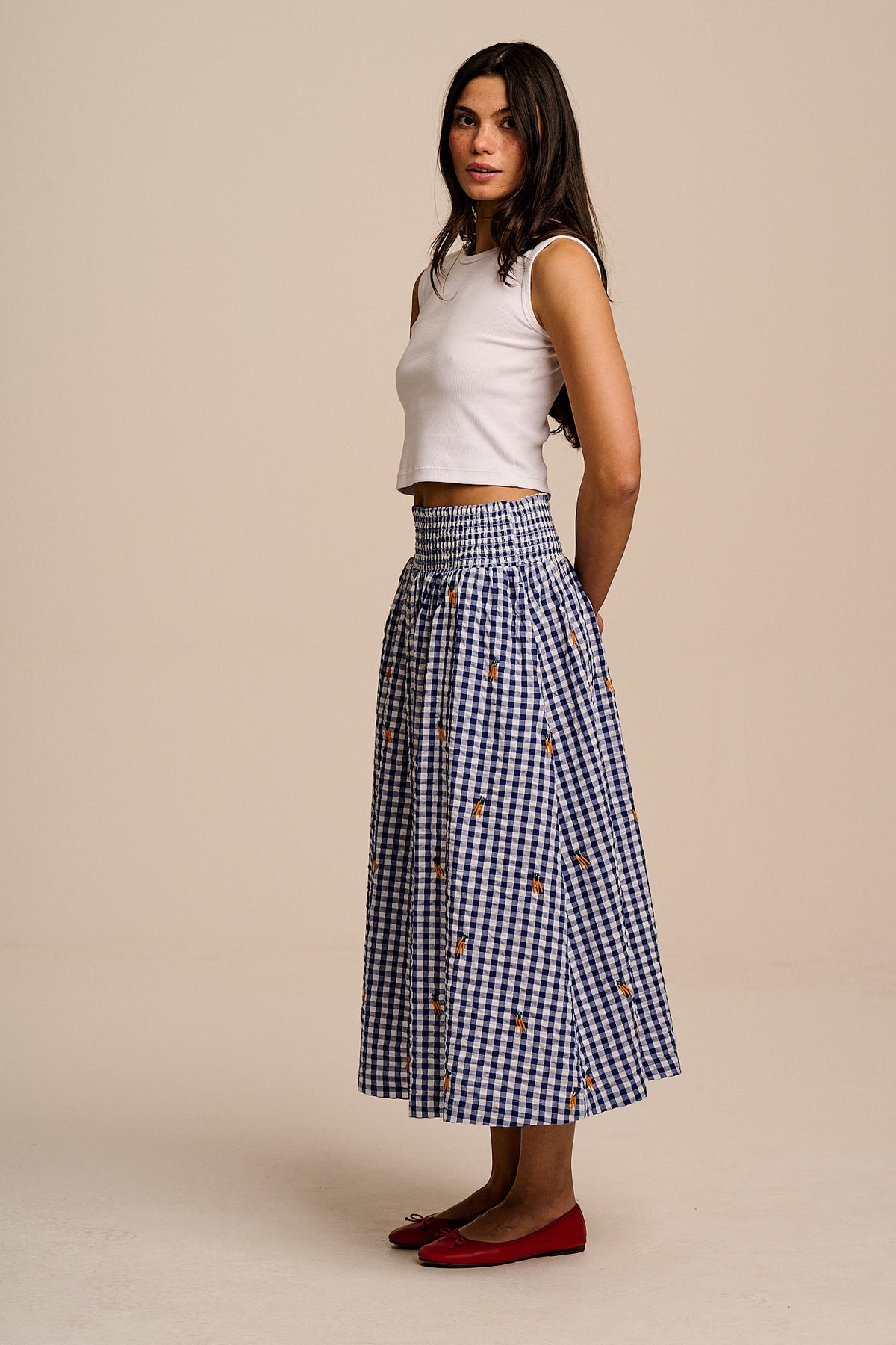 Sofiya - Midi Skirt in Gingham Carrot Embroidery