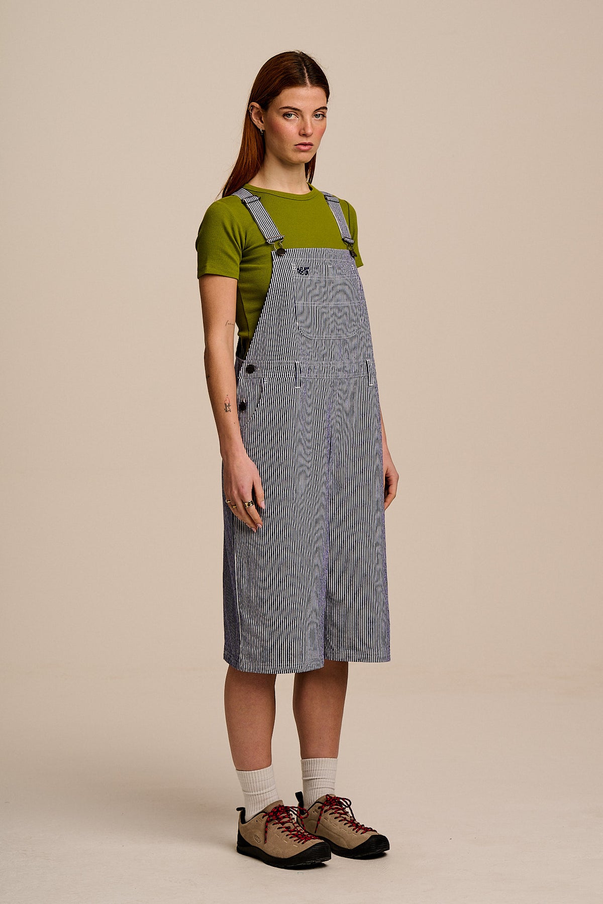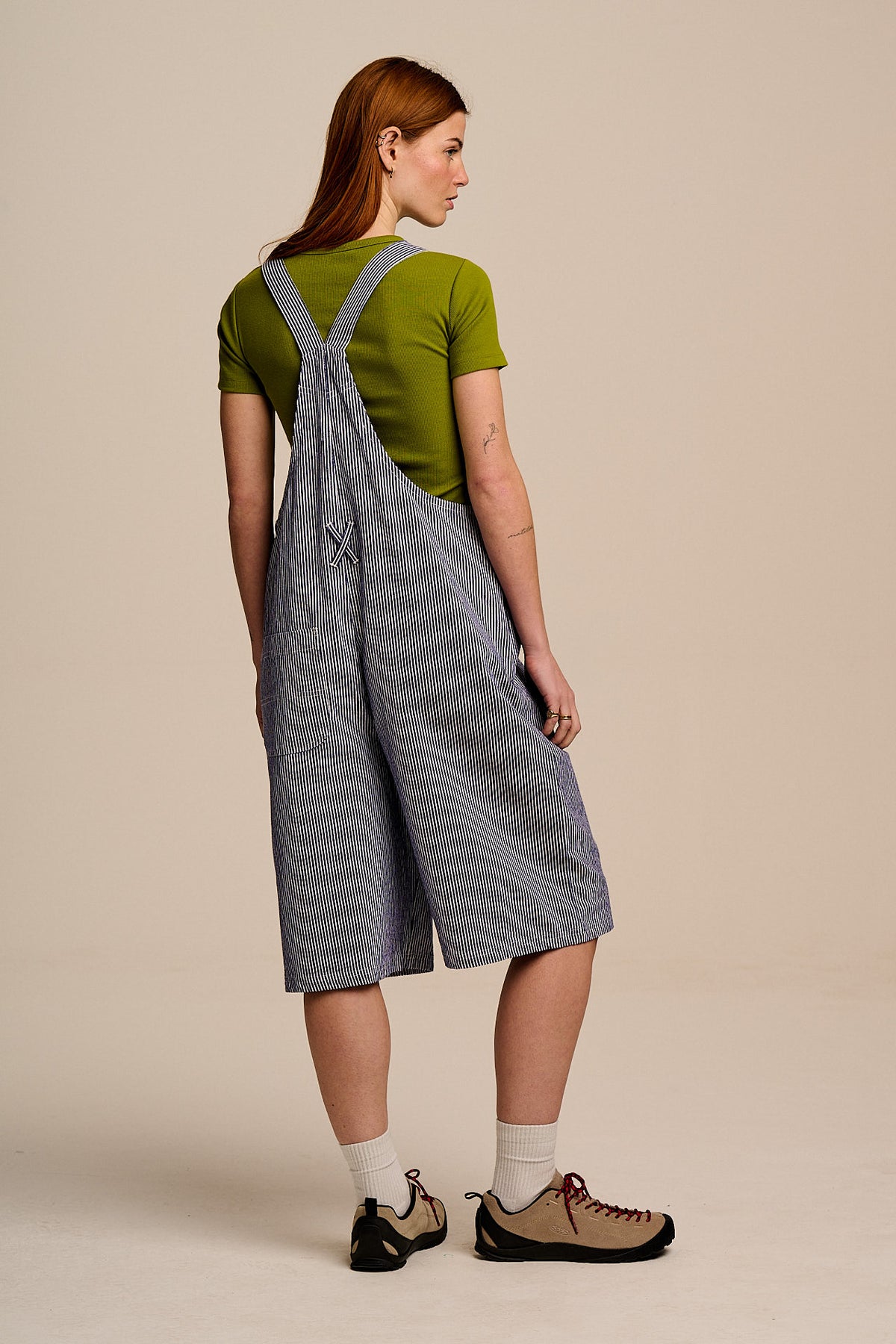 Jara - Cotton Dungarees Shorts in Navy Pinstripe