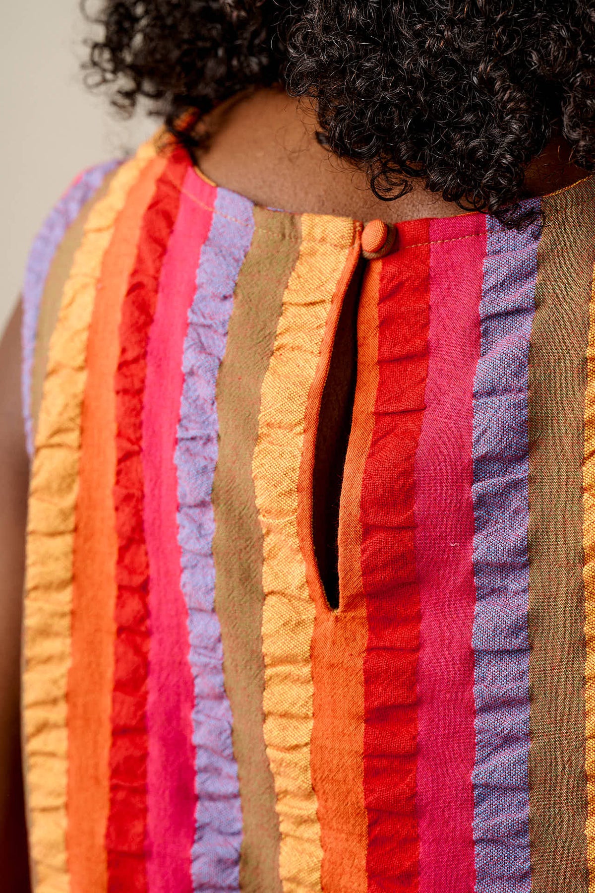 Arden - Cotton Shell Top in Wide Rainbow Stripe
