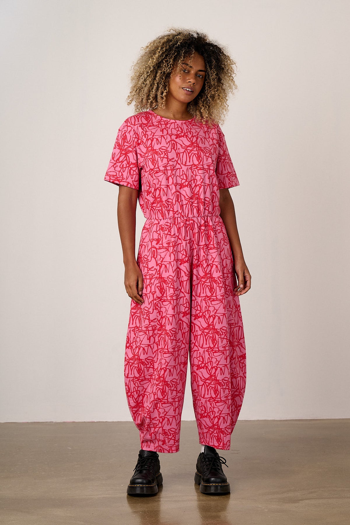 Nova - Barrel Leg Cotton Jersey Jumpsuit in Pink Graffiti