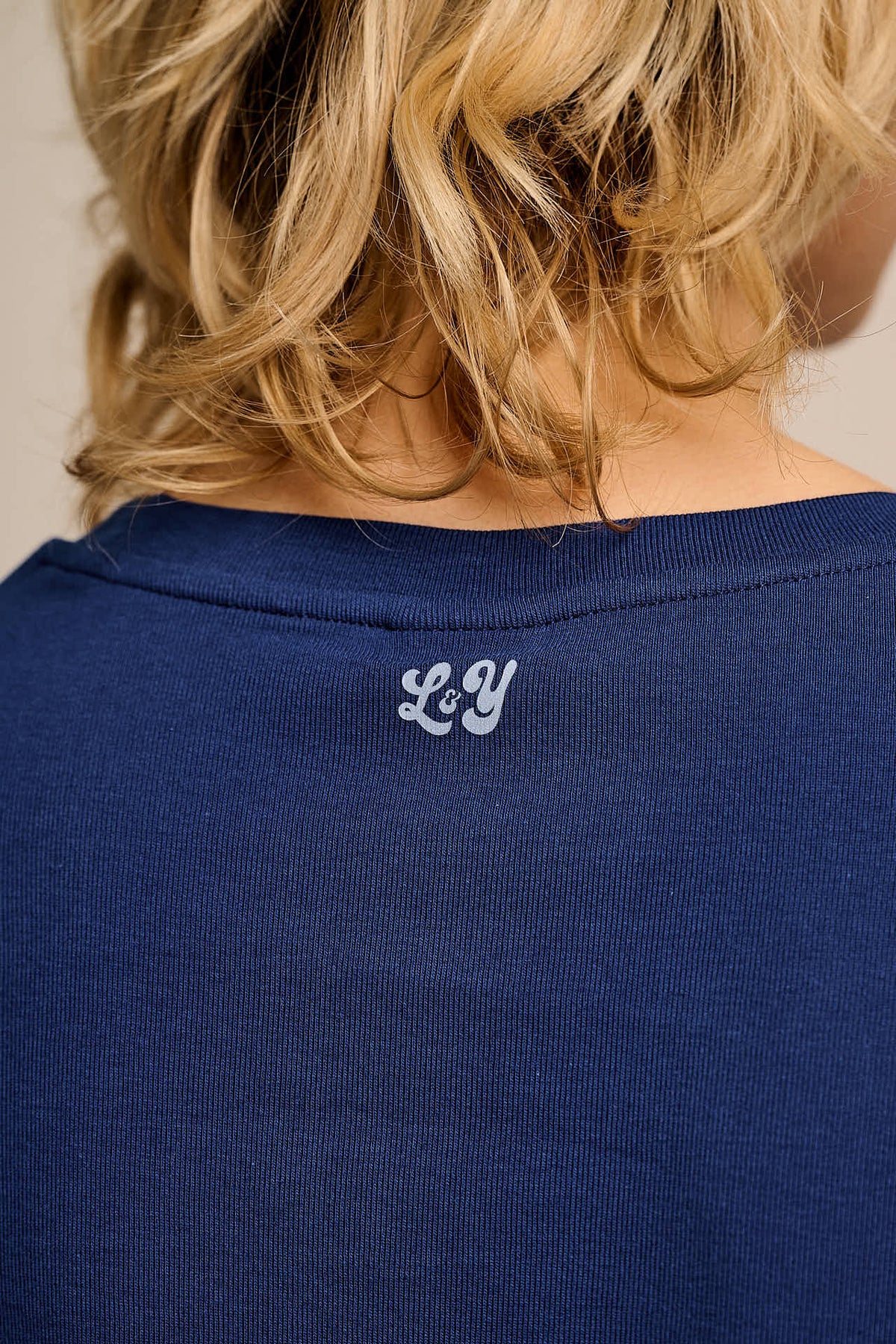 Hansel - Long Sleeve Cotton Jersey Crop Top in Navy