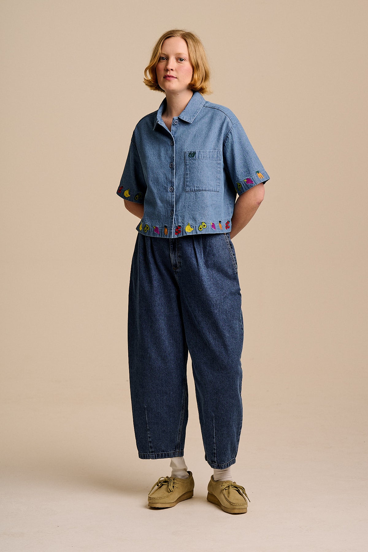 Archer - Cotton Shirt in Light Blue with Veg Embroidery