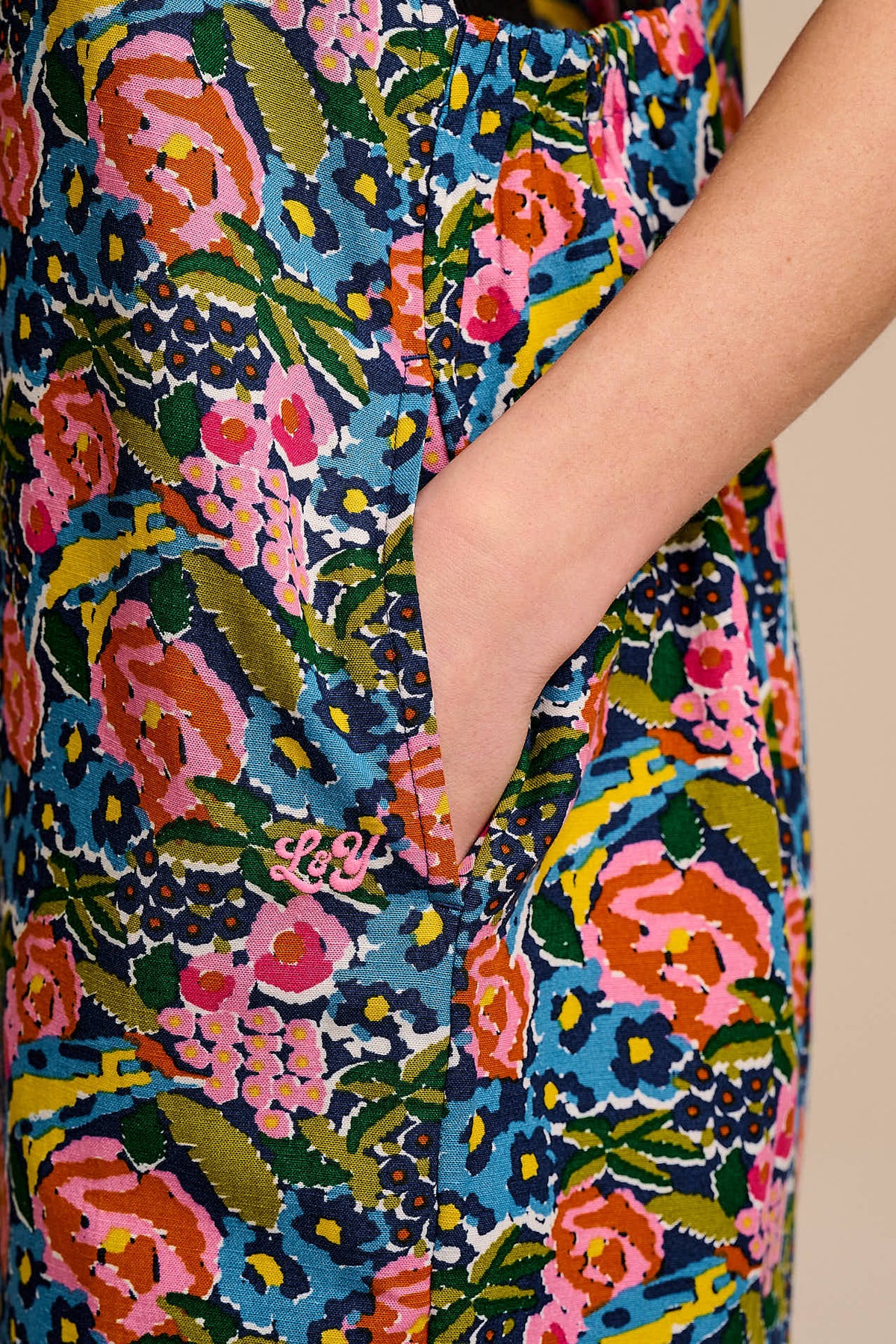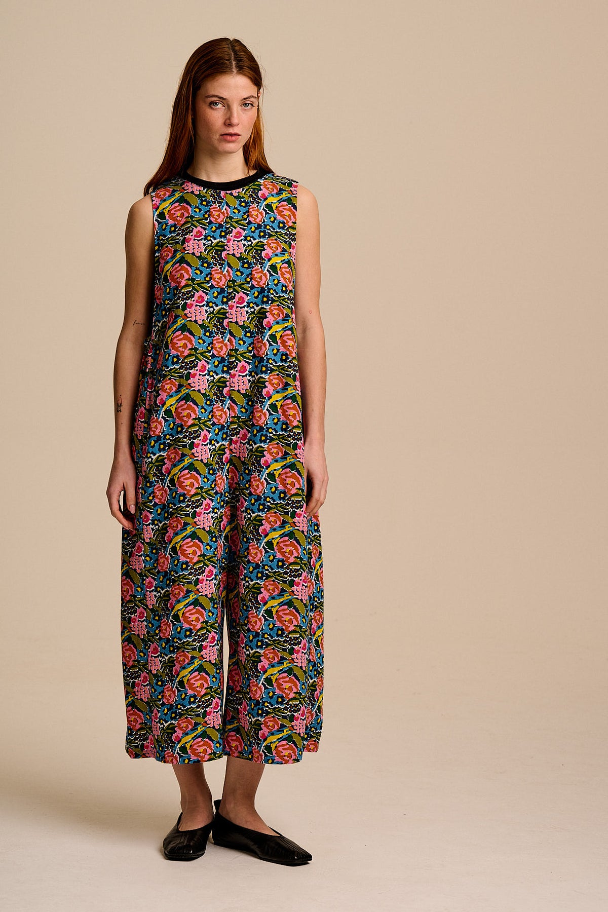 Tilda - Cotton & Viscose Wide Leg Jumpsuit in Blue Birdie Floral